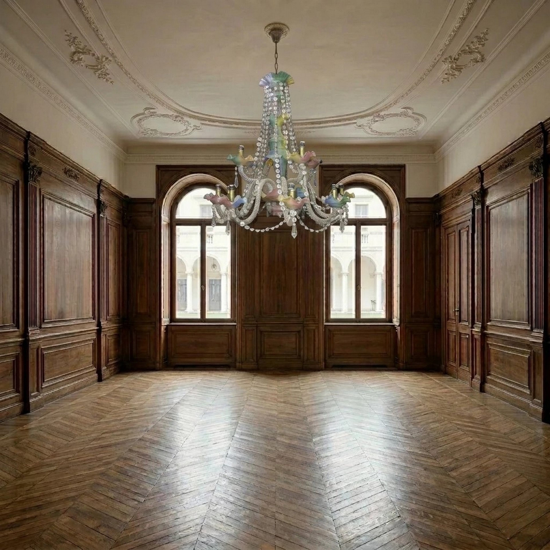 Baccarat France - Elegante lampadario in cristallo Baccarat, 19° secolo h cm 80x90 Bracci a torcion in cristallo trasparente, piattini in vetro colorato e brindoli a rosette, a 12 luci.