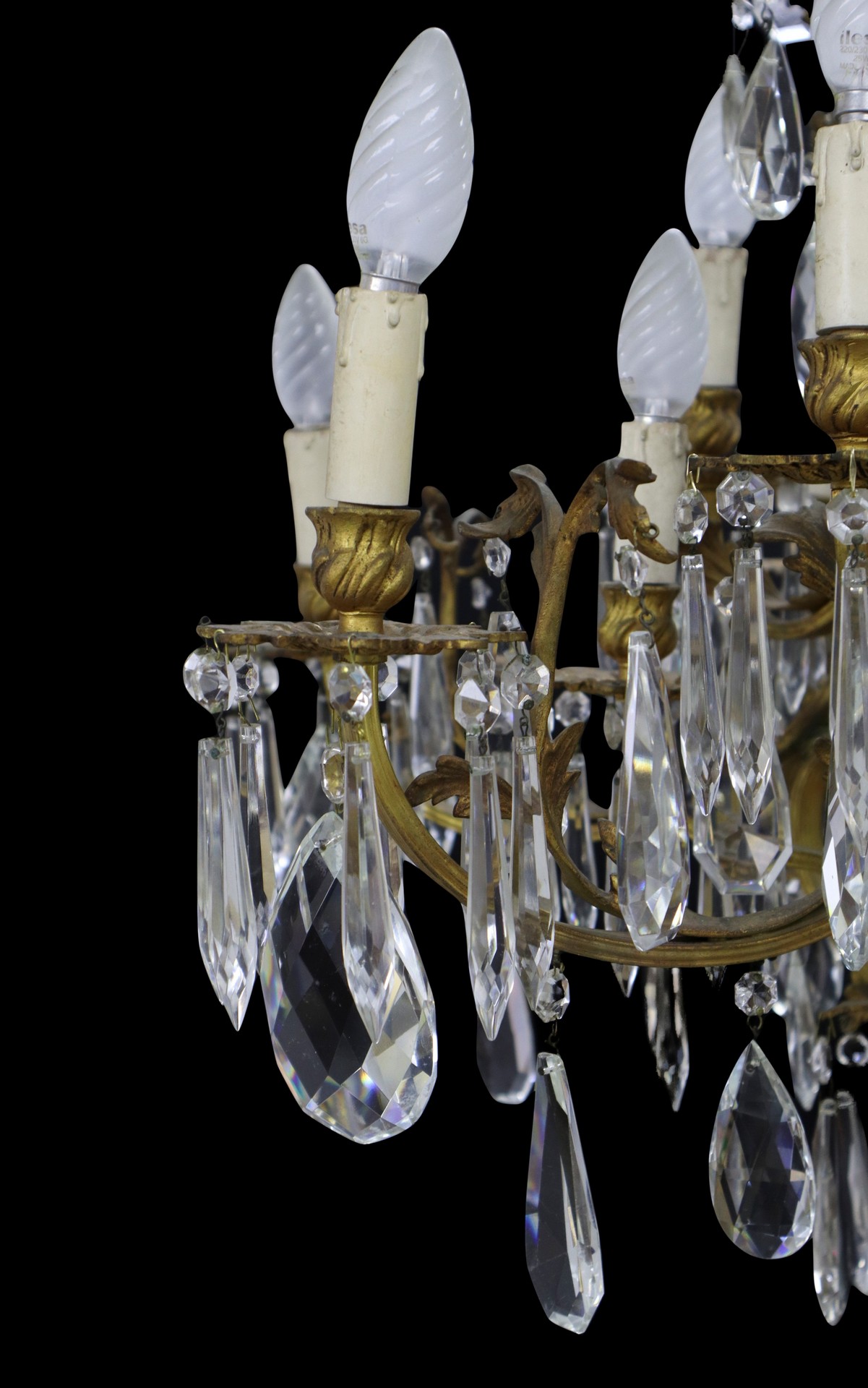 Lampadario luci in metallo dorato e brindoli molati h100x70