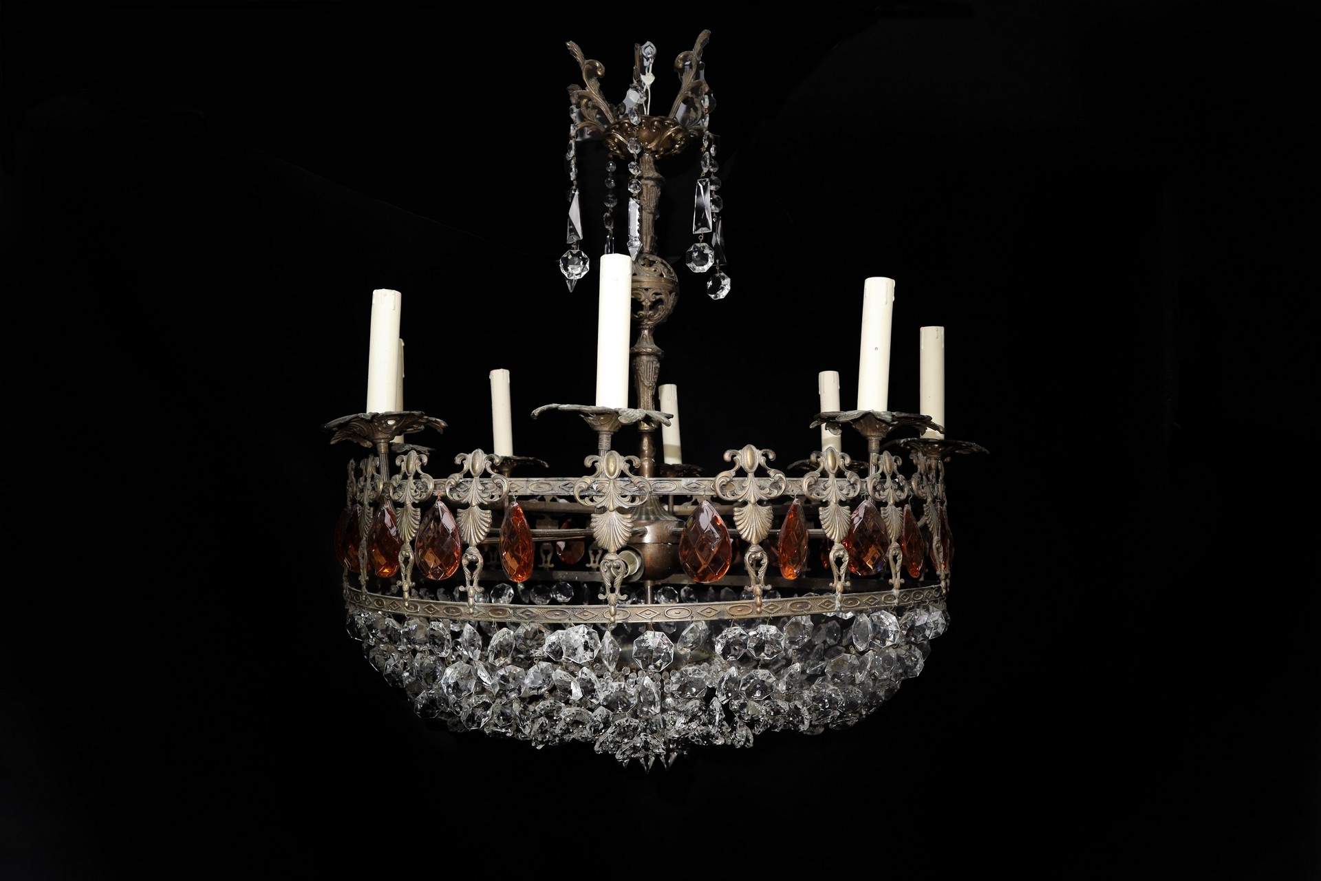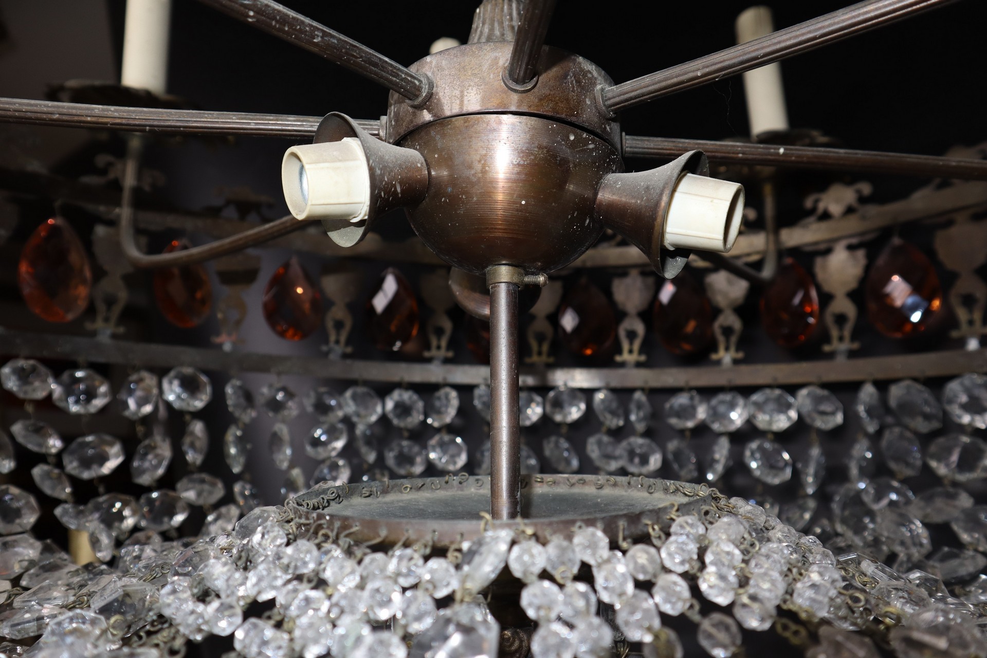 Lampadario a 11 luci in ferro battuto con brindoli H cm 76 x L cm 70 Mancanze di brindoli e piccole dissaldature