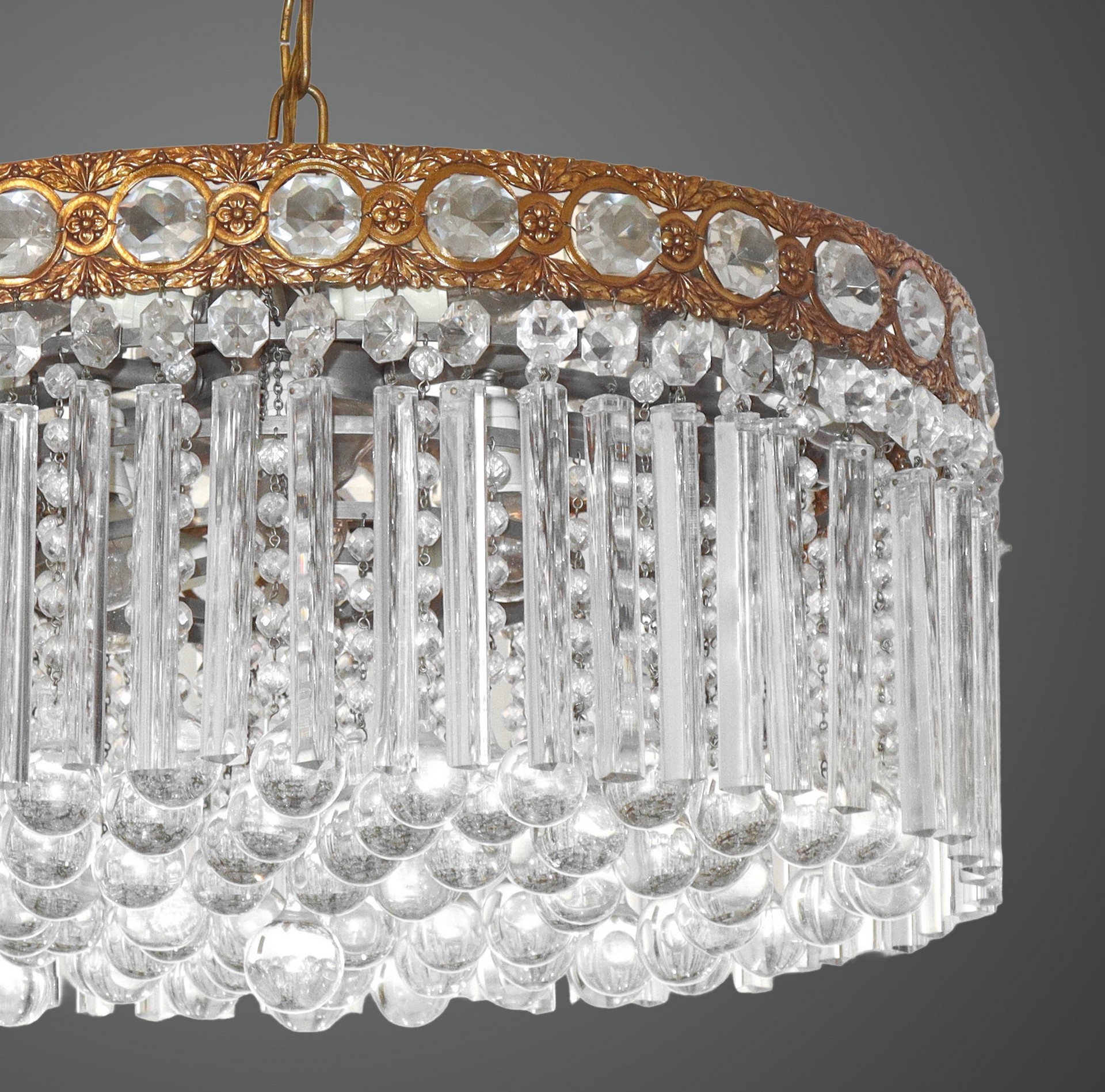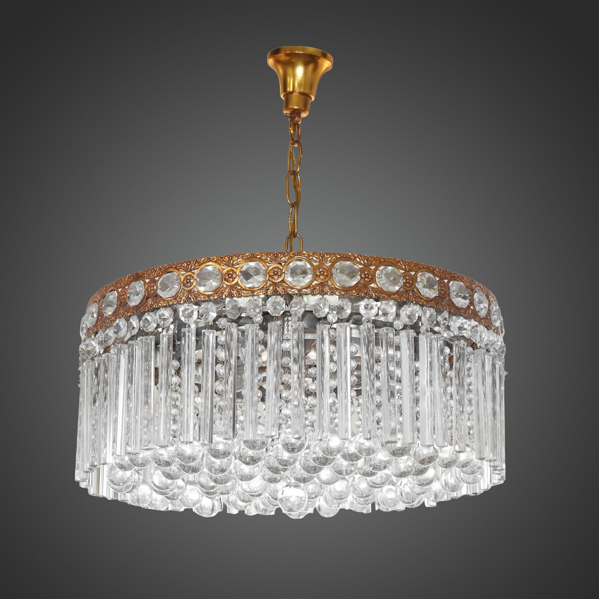 Lampadario a 18 luci stile impero con canne a prima in cristallo e struttura in metallo dorato h cm 29X63