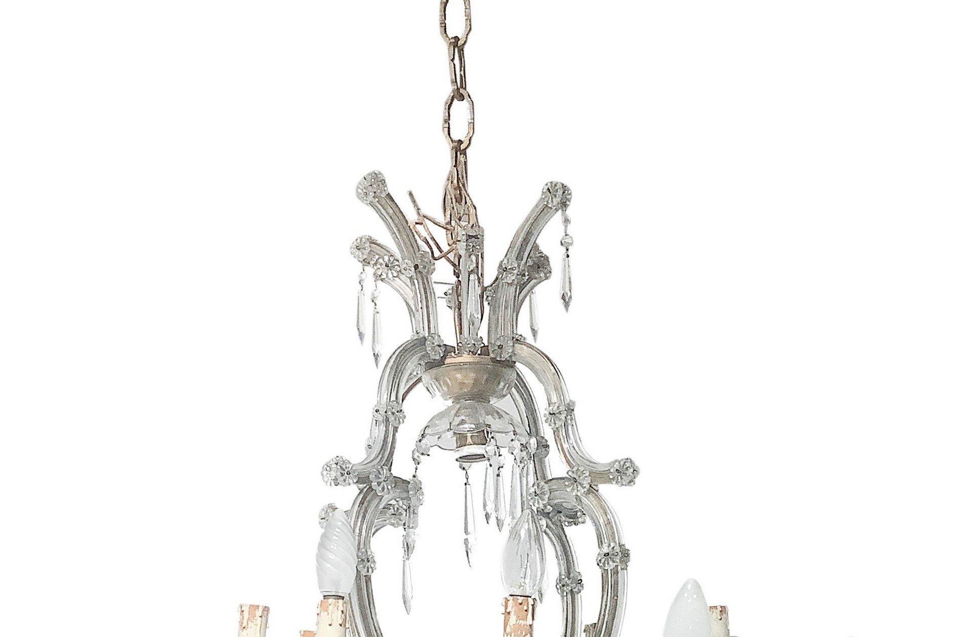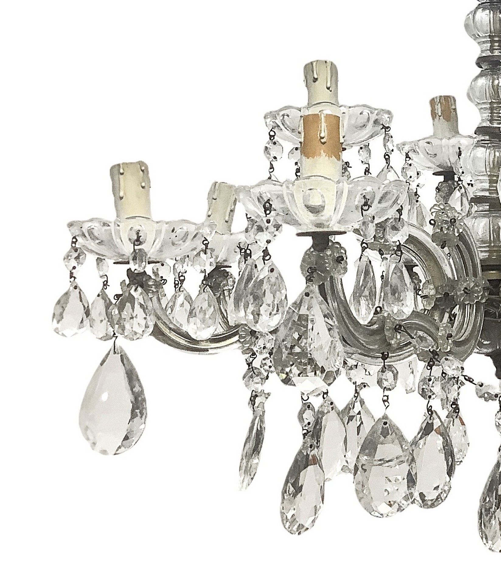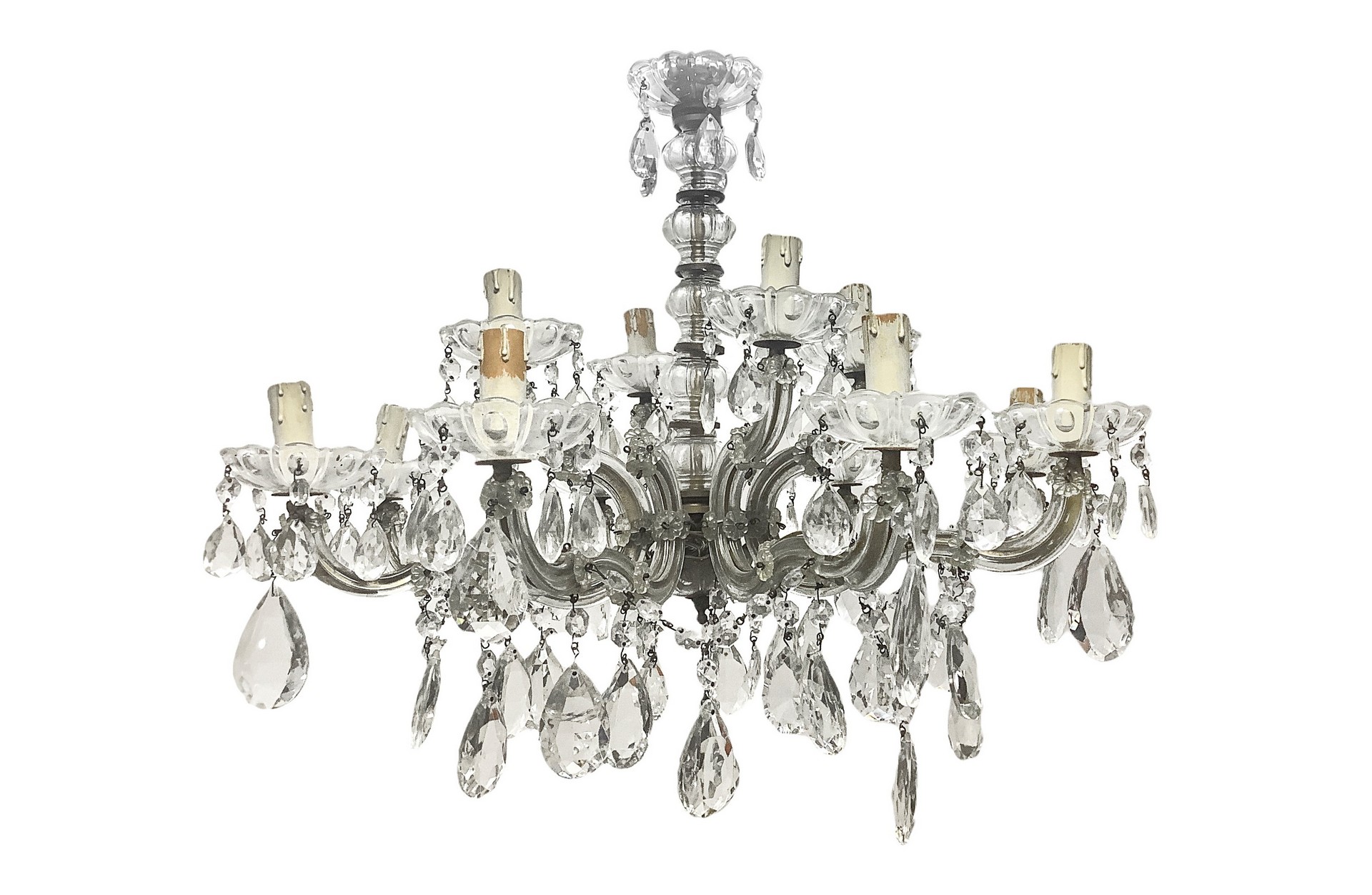 Lampadario a sospensione dodici luci in vetro di Boemia, 1930s - 1940s h cm 70x60 Costruzione a cesta, stile Maria Teresa