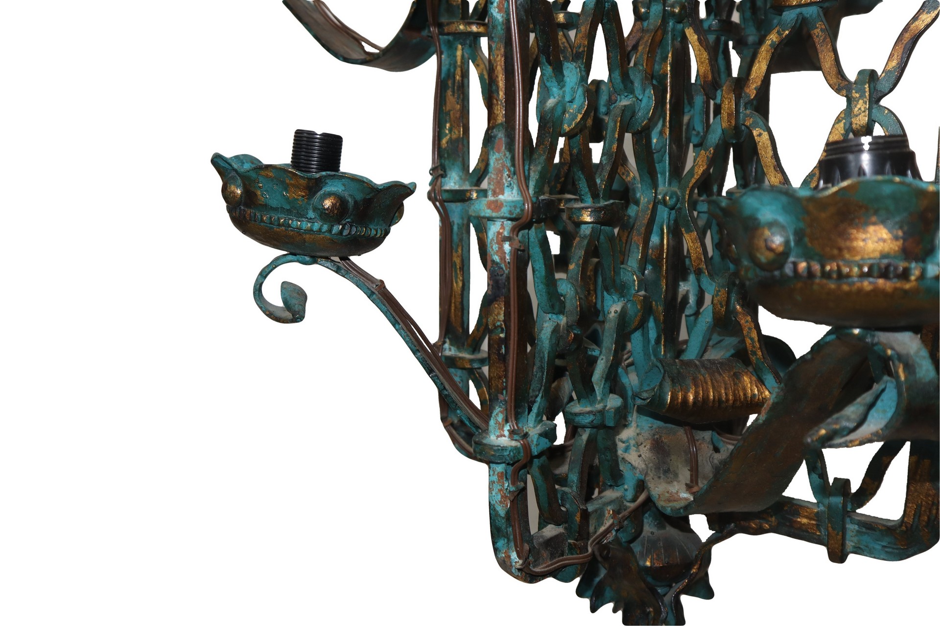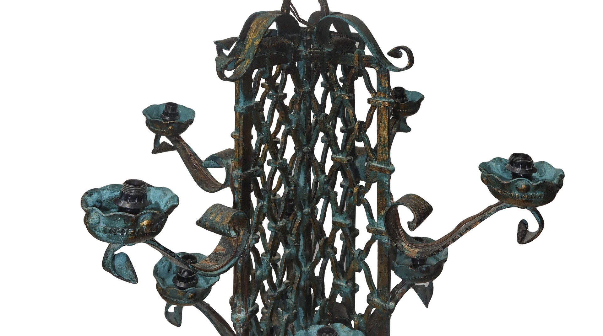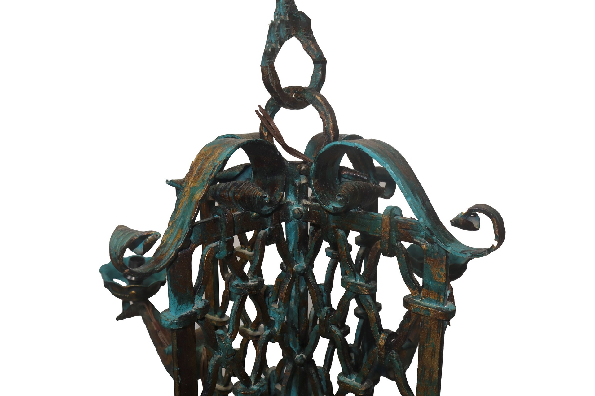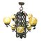 Lampadario in ferro battuto, Early 20° secolo cm 105 x cm 85 Filatura su una boccia