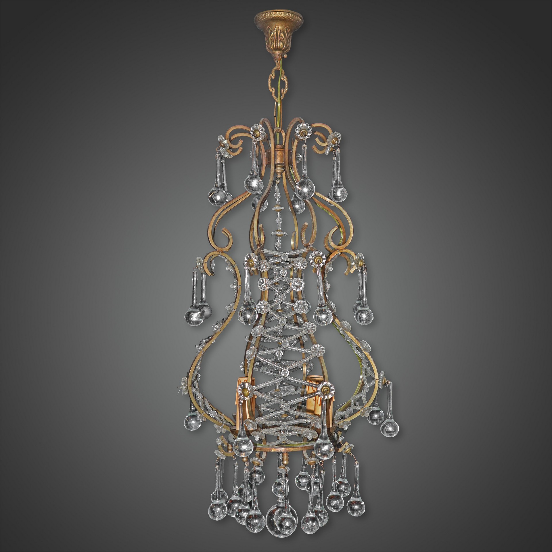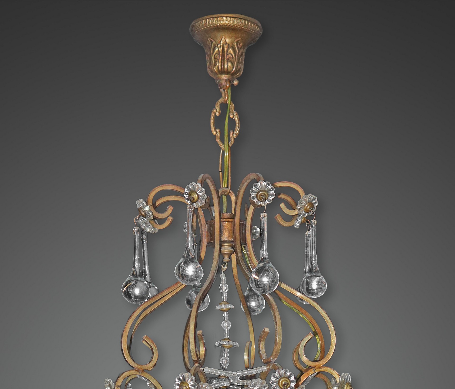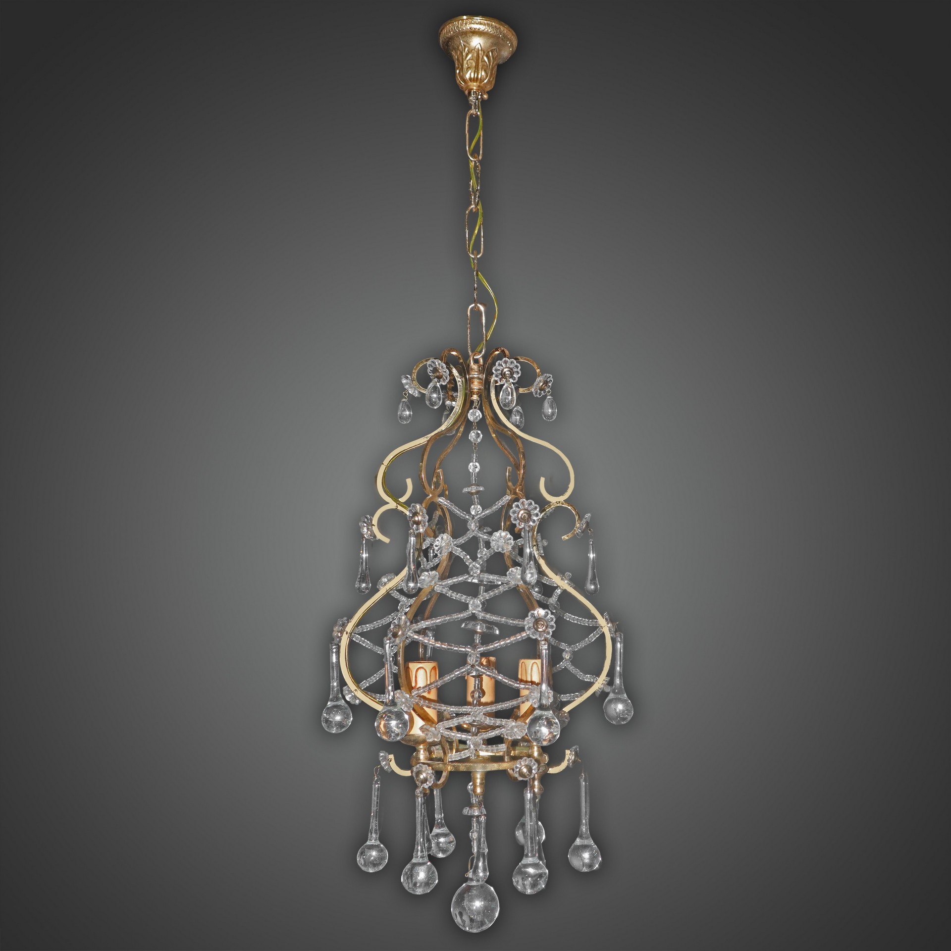 Lotto 63 | Lampadario in metallo a 4 luci con gocce in vetro di Murano