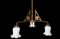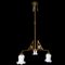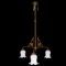 Lampadario 12 Decò a tre luci con vetri in opaline bianco a tulipano, Early 20° secolo Cm 105x54 Stelo in ottone dorato.