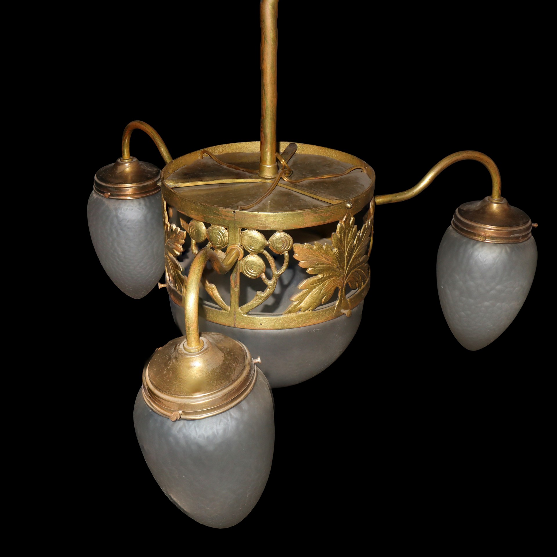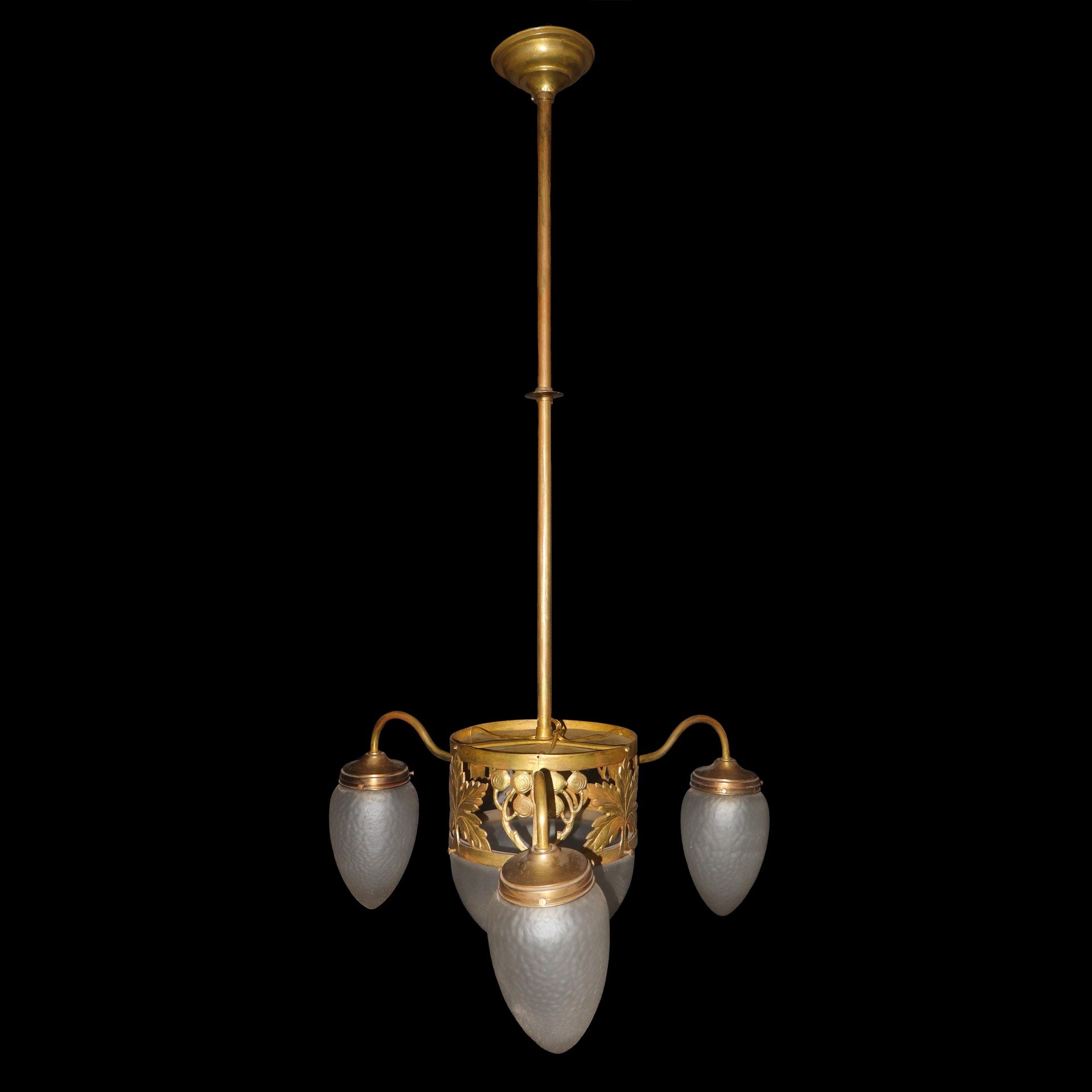 Lotto 75 | Lampadario 4 luci vetri a pigna, Liberty (early 20° secolo)