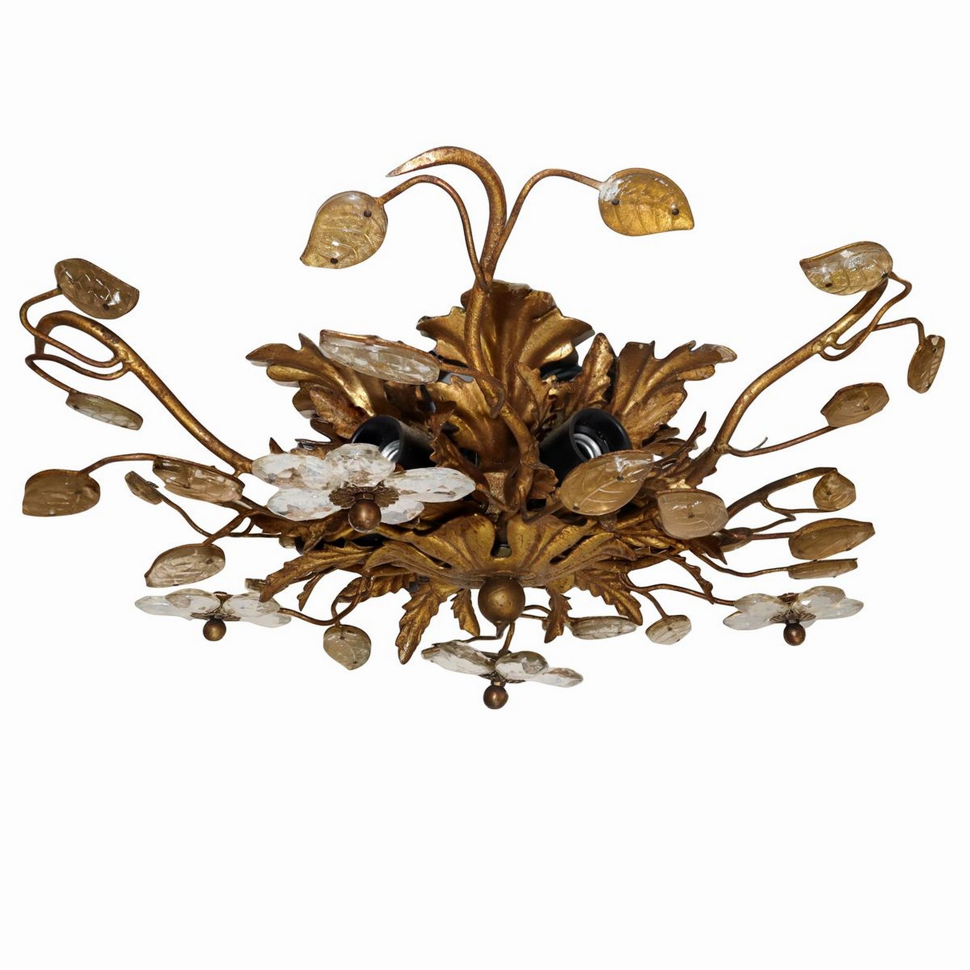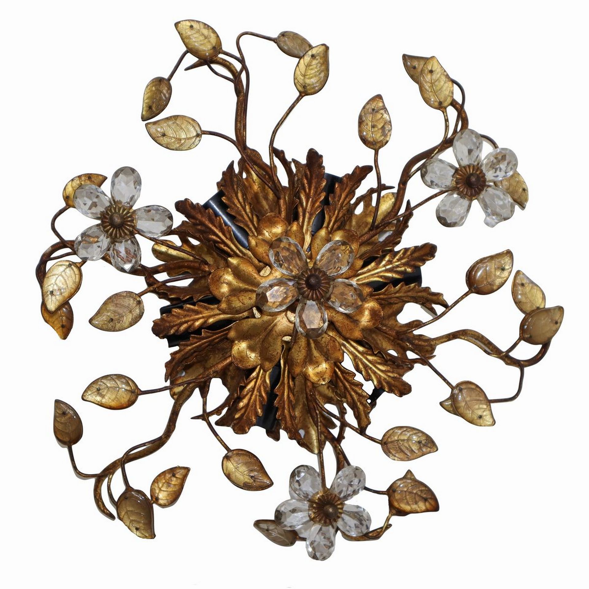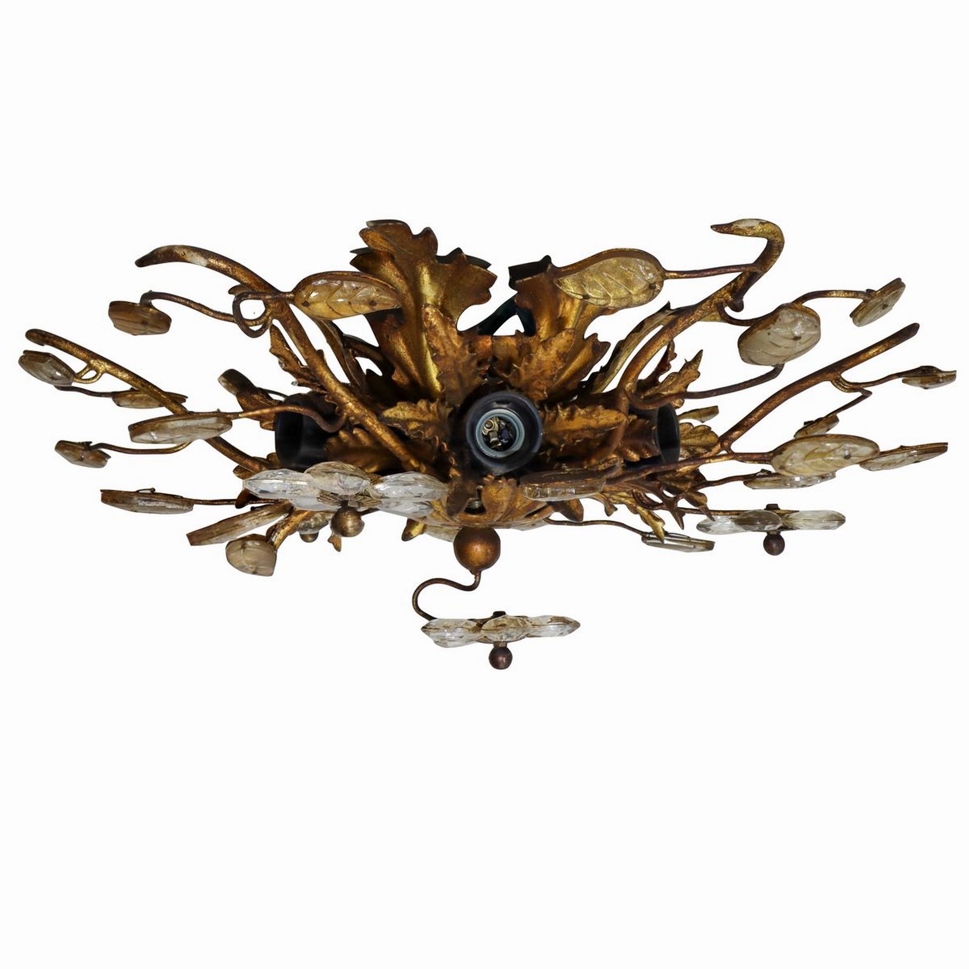 Plafoniera a 6 luci in metallo dorato con cristalli molati H cm 15 , L cm 36