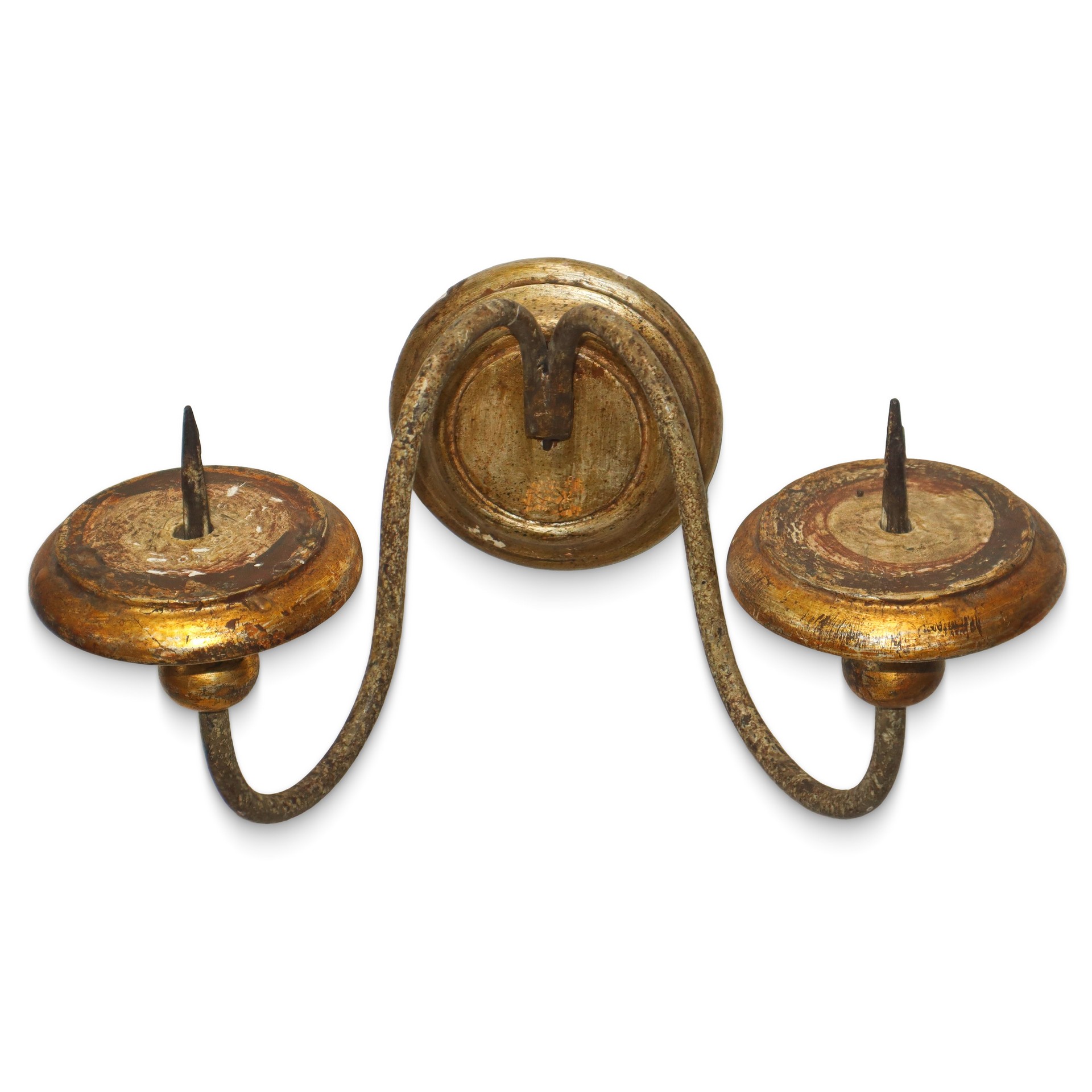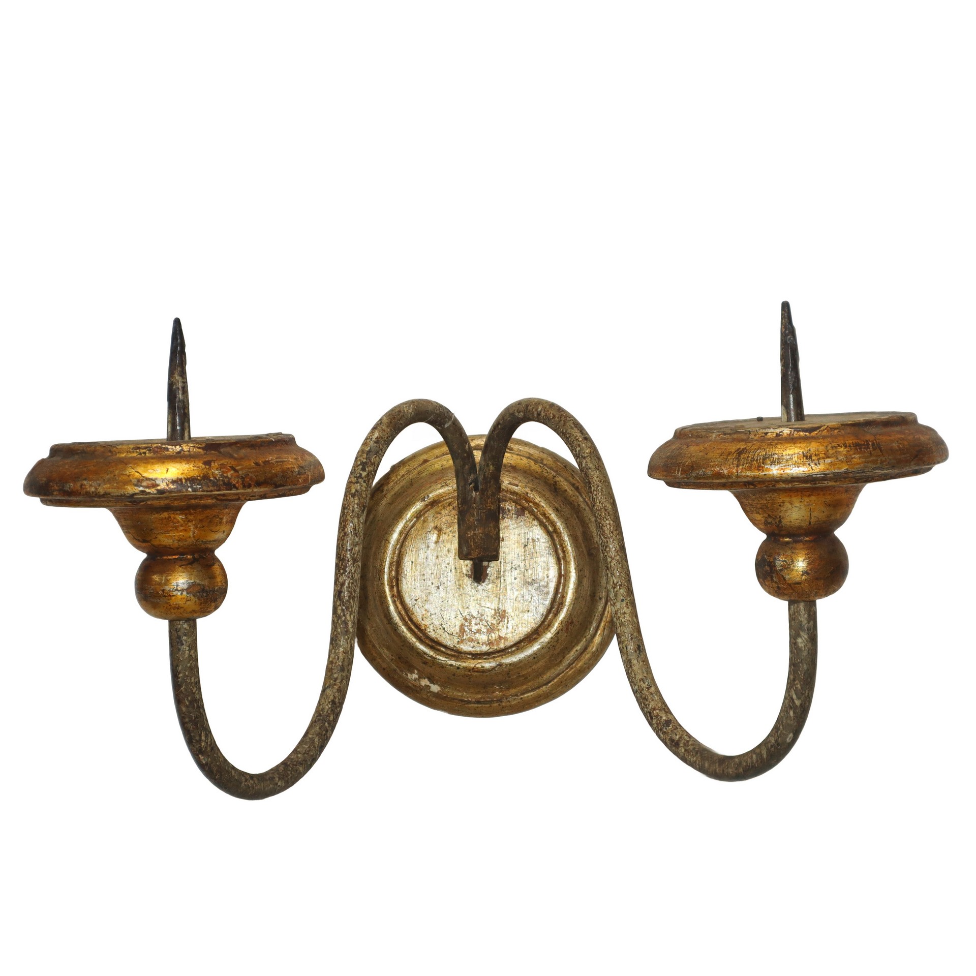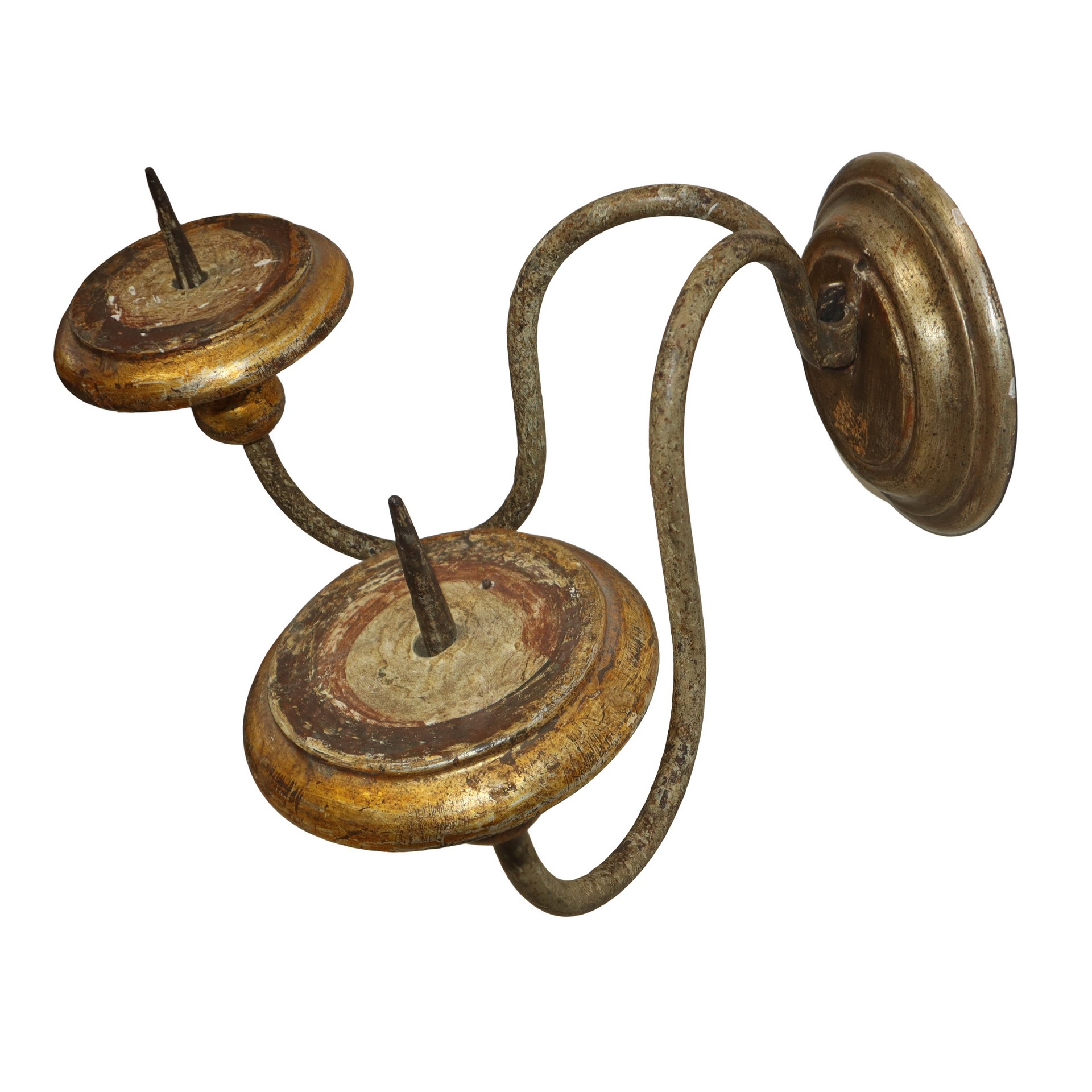 Applique a due luci, 20° secolo h 20 x 30 x 35 cm braccia in ferro e base in legno
