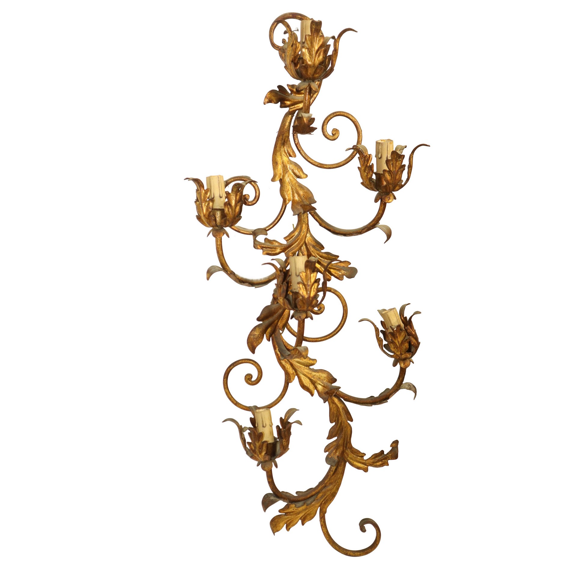 Applique a 5 luci in metallo dorato con decori a foglie h cm 89,5X34