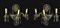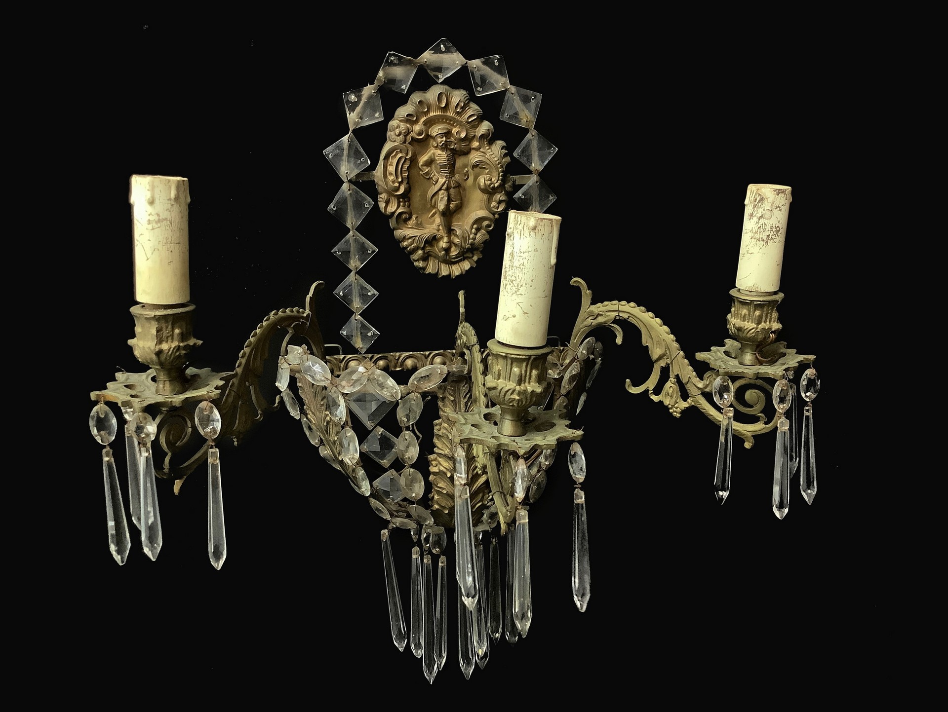 Coppia di appliques in ottone e carta di spagna leggera, con brindoli molati a mano. A tre luci, Late 18° secolo