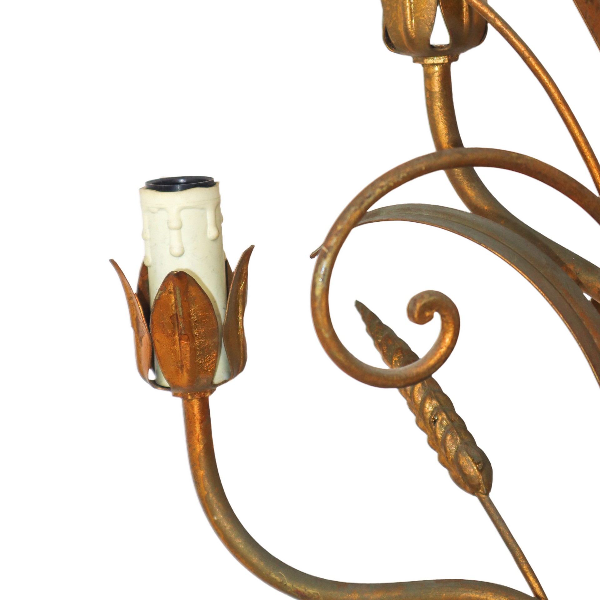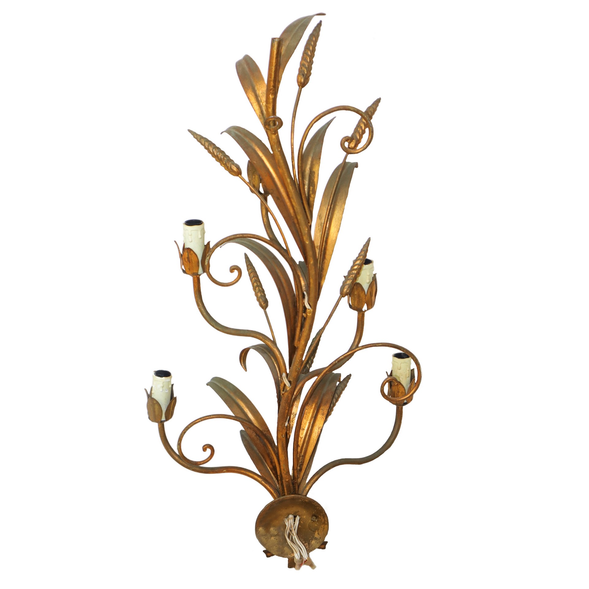Applique a cinque luci in lamierino dorato con spighe di frumento, 20° secolo