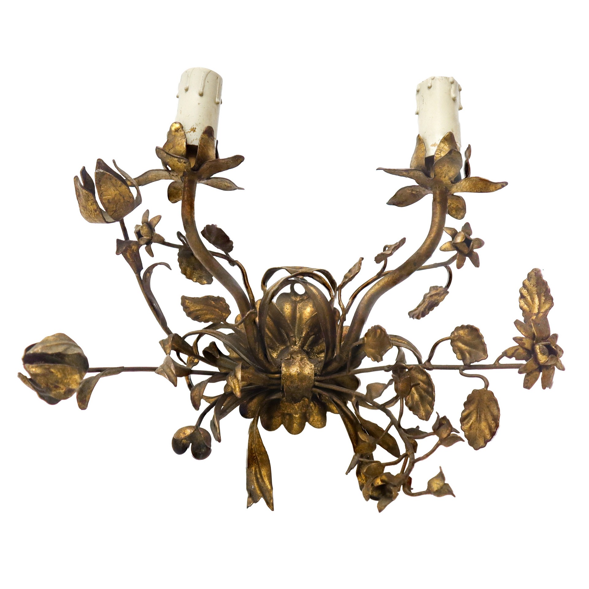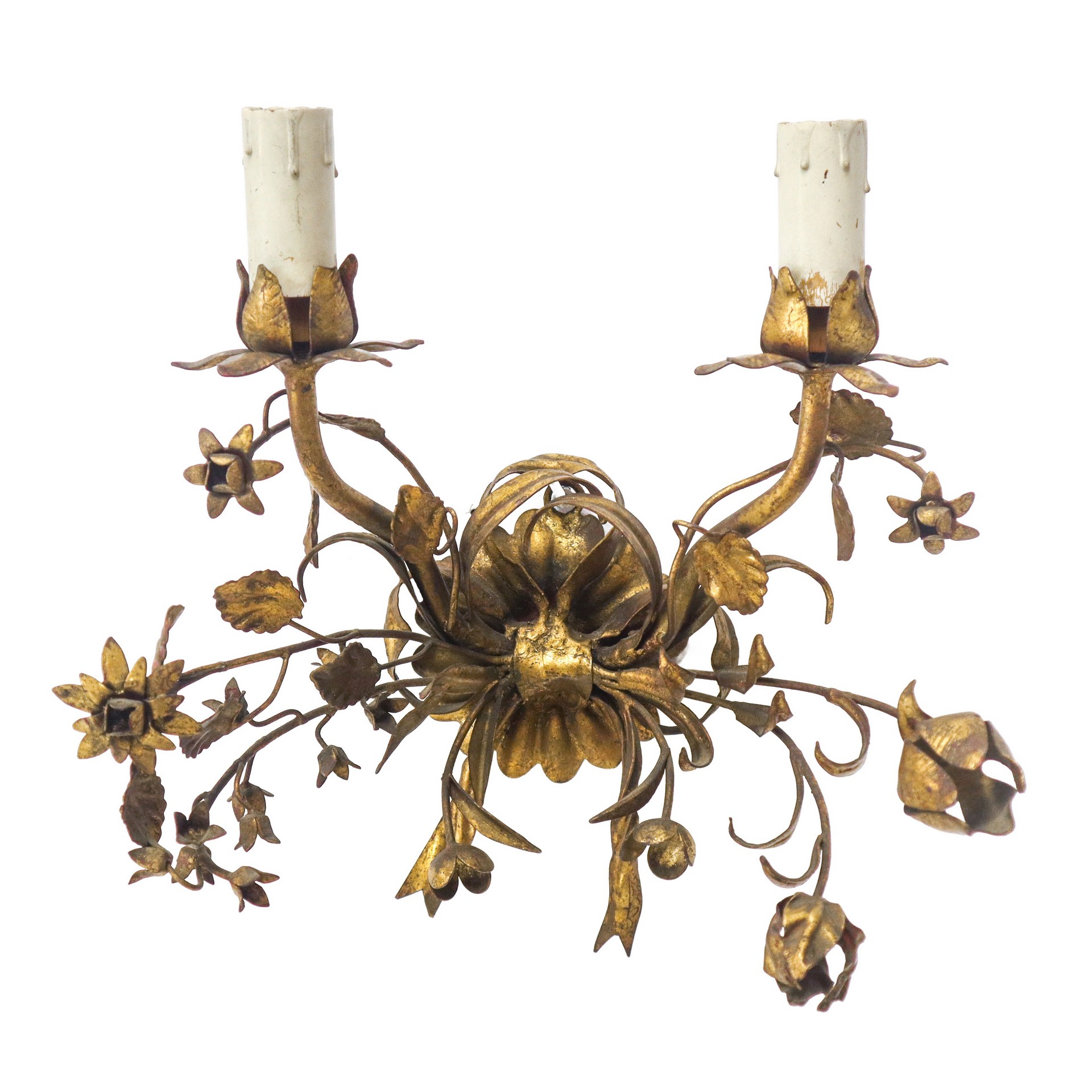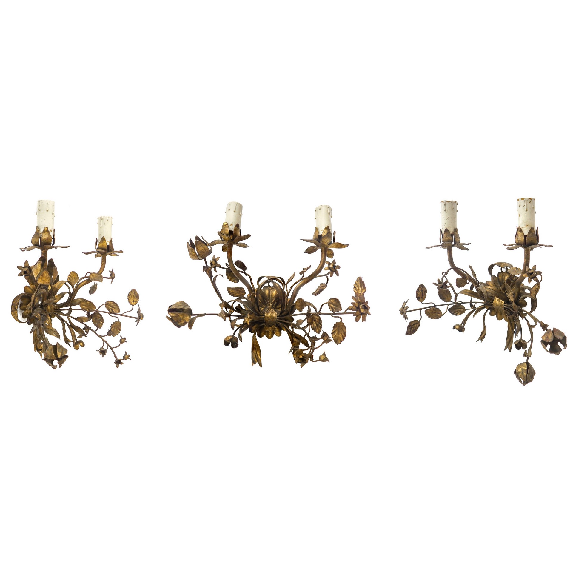 Lotto 142 | N°3 Appliques a due luci in metallo dorato, early 20° secolo