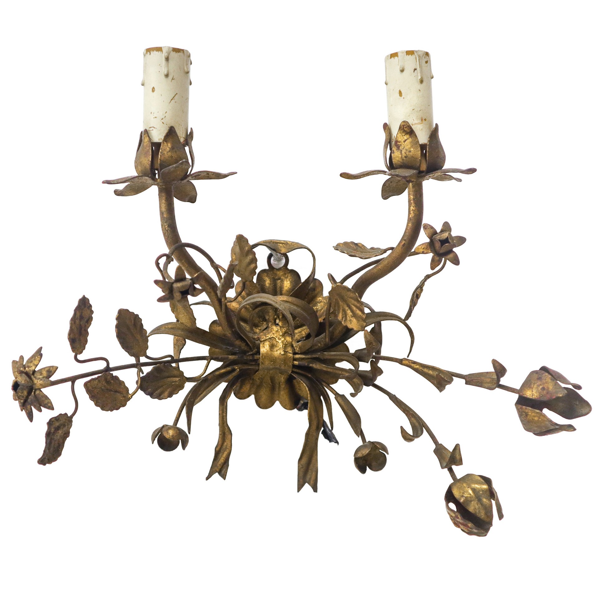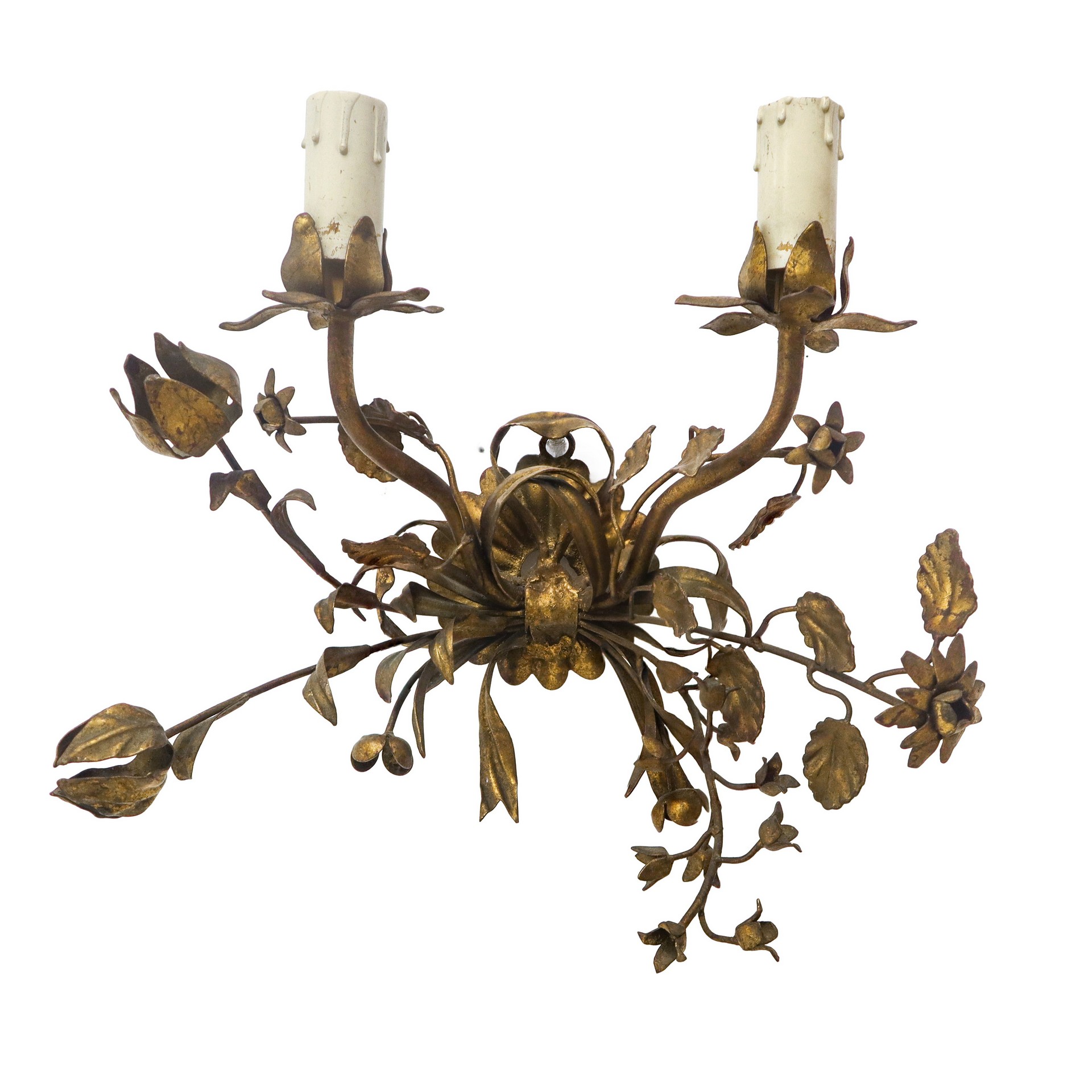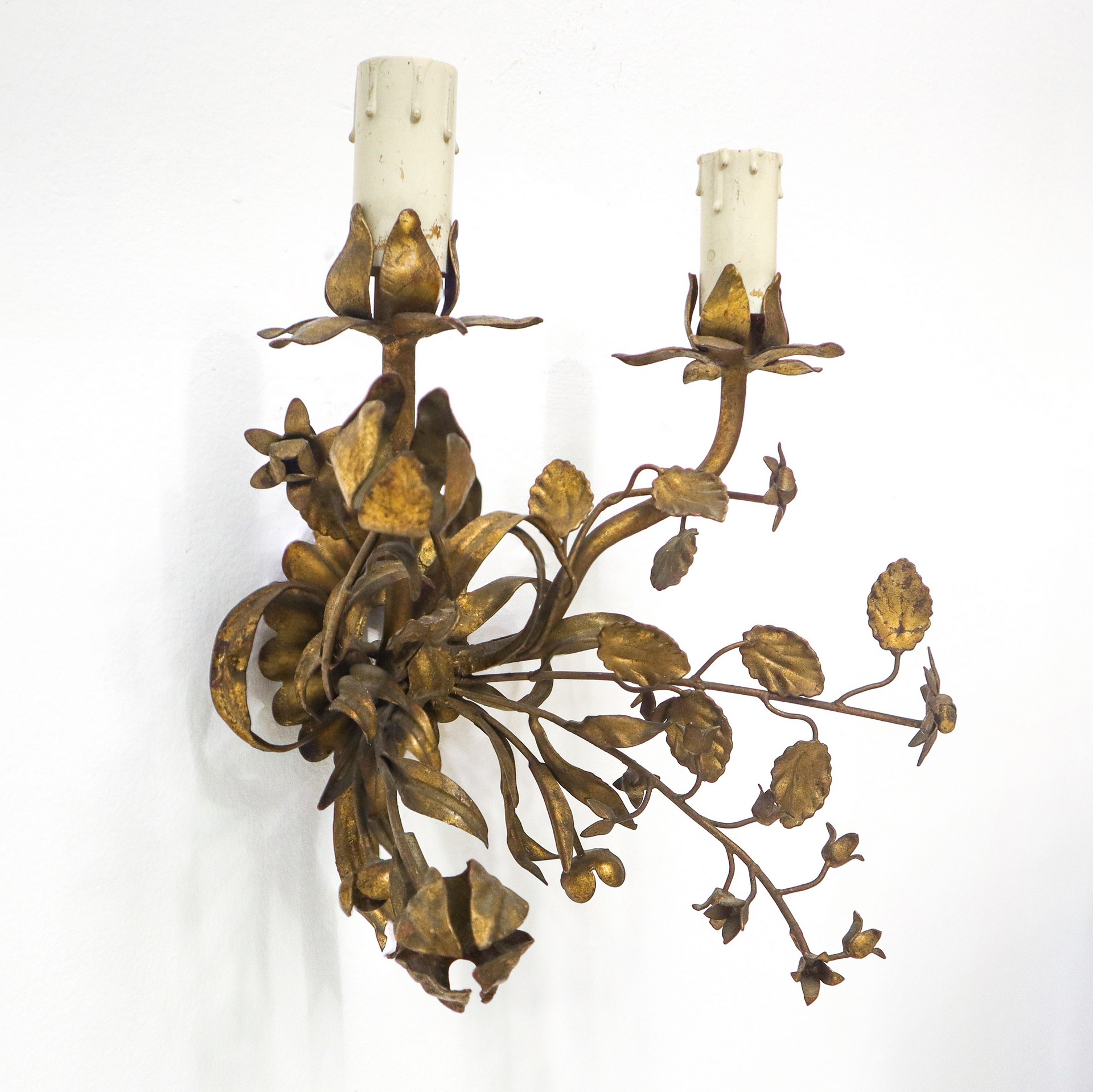 Lotto 142 | N°3 Appliques a due luci in metallo dorato, early 20° secolo