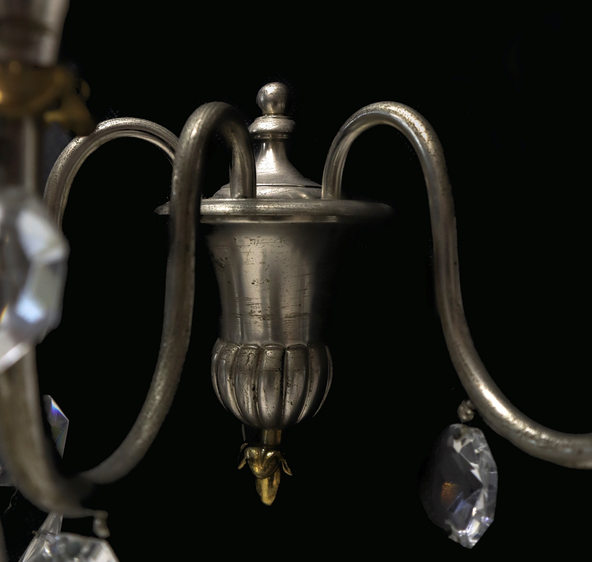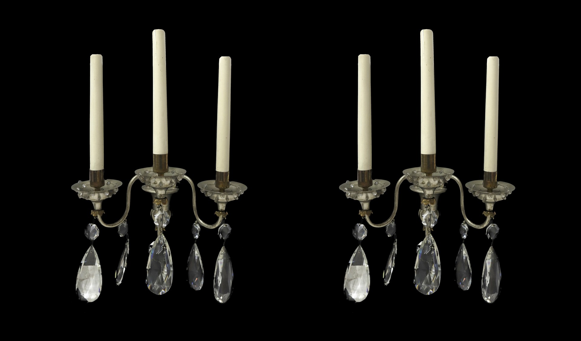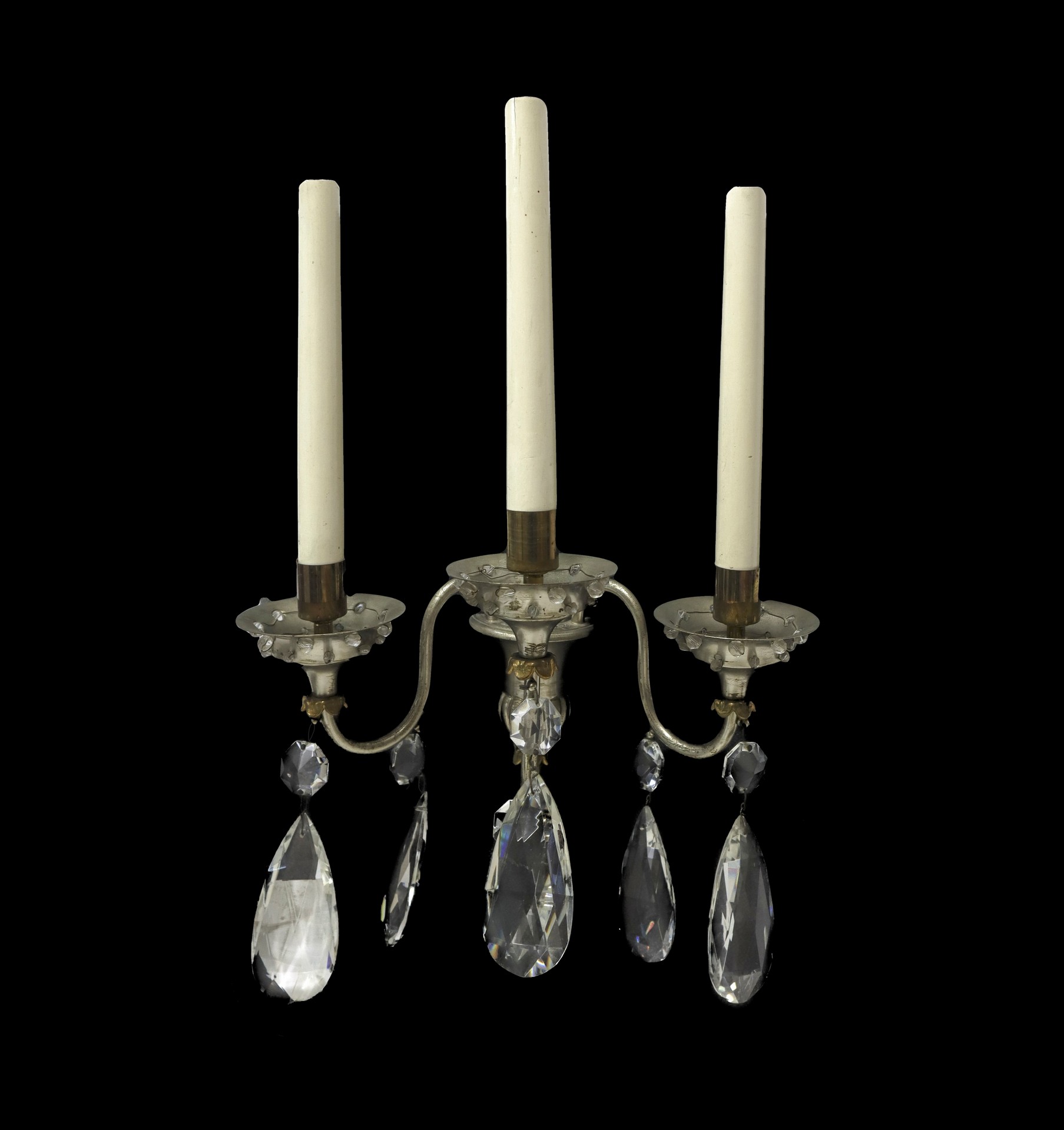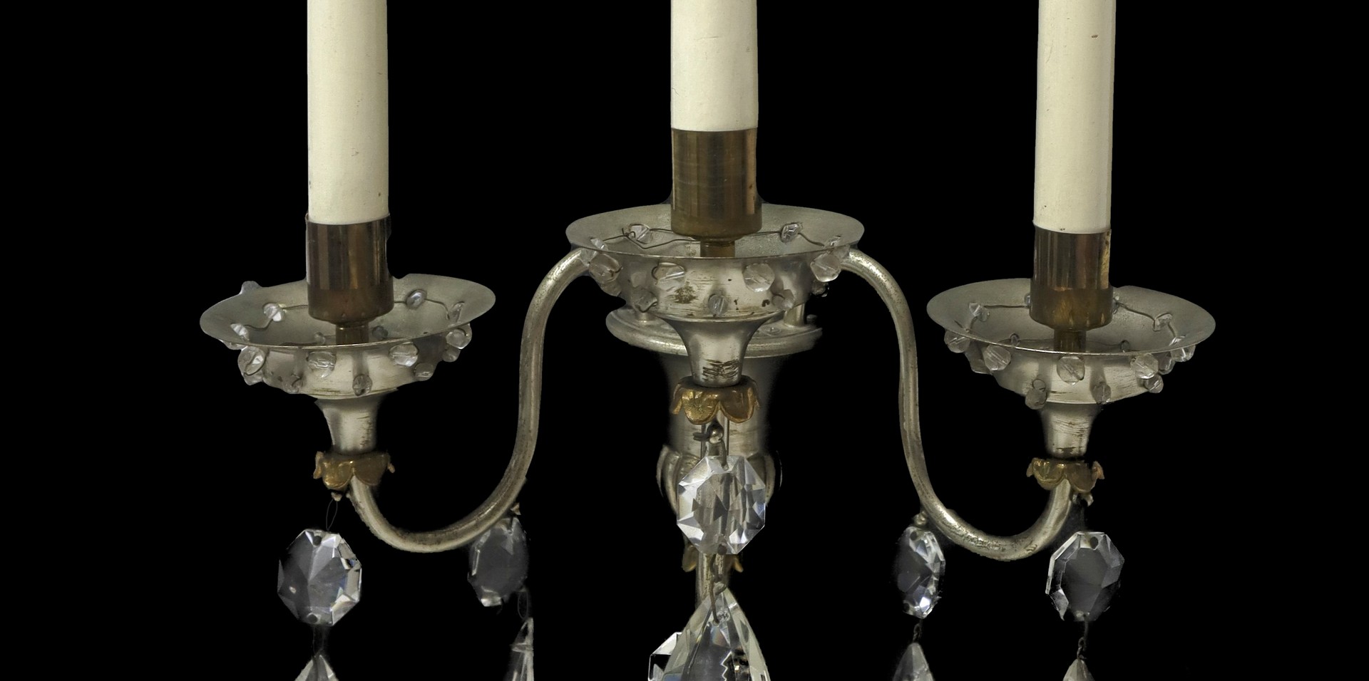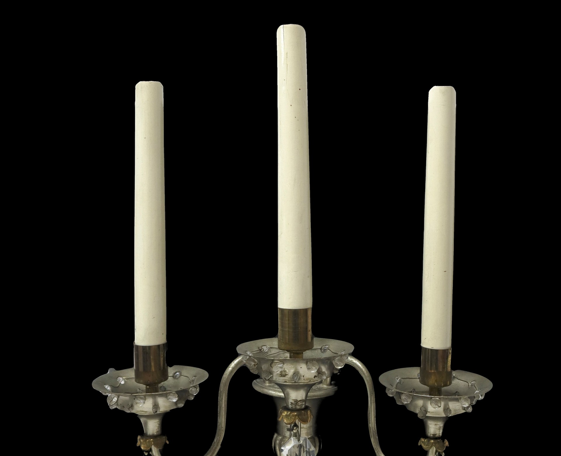 Coppia di appliques in metallo e brindoli a tre candele
