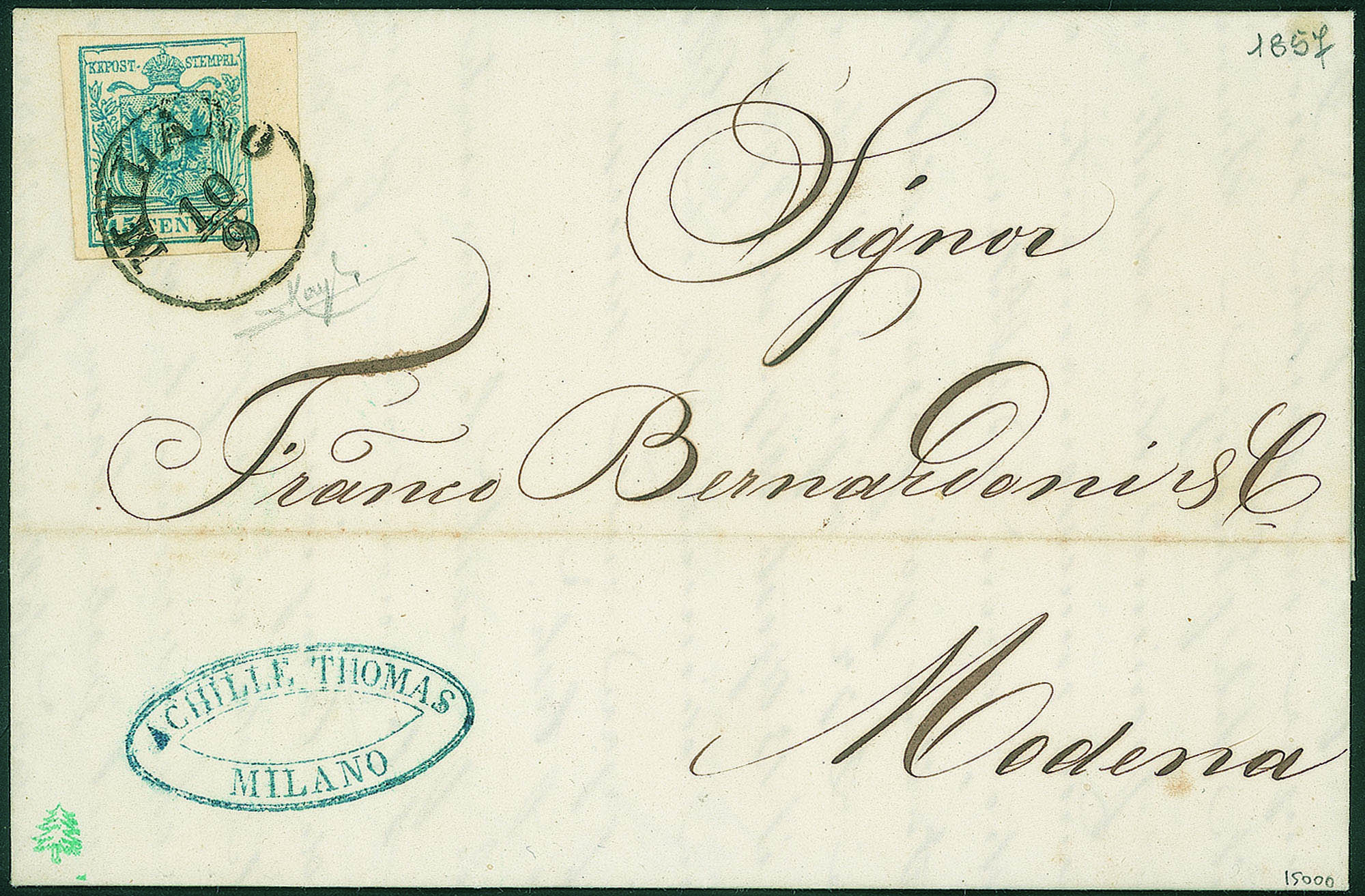 Antichi Stati Italiani - Lombardo Veneto - Lettera affrancata con 45 cent (10)Da Milano a Modena del 10.9.57 - Raybaudi - ex coll. Provera