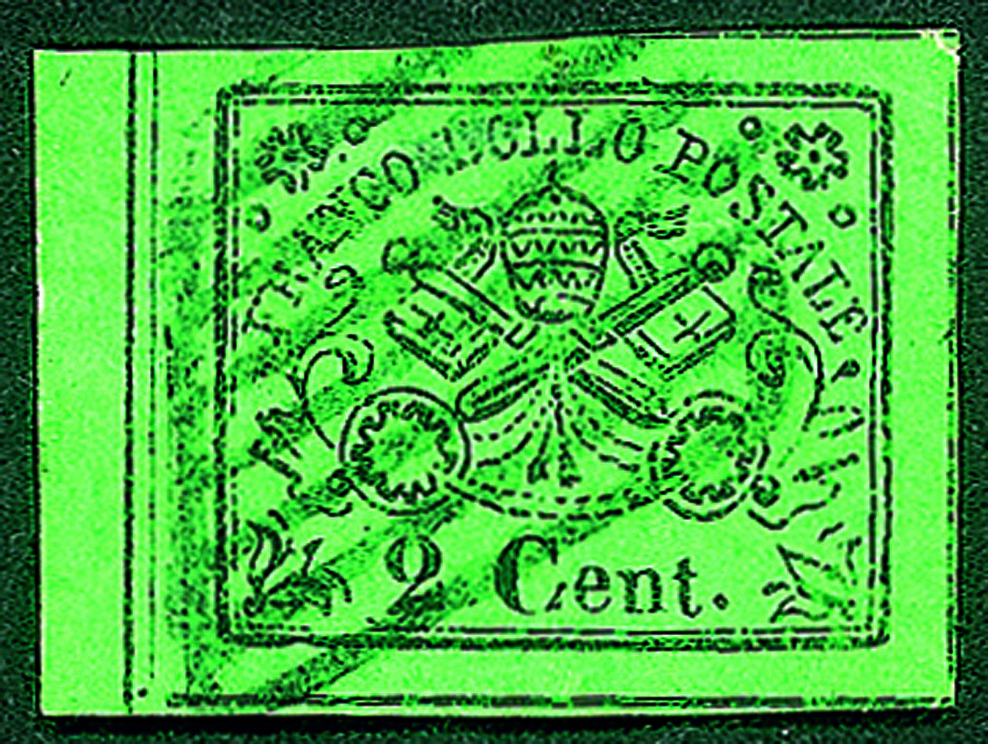 Antichi Stati Italiani - Stato pontificio - 1867 - 2 cent Stemma (13)Bordo di foglio a sinistra - usato