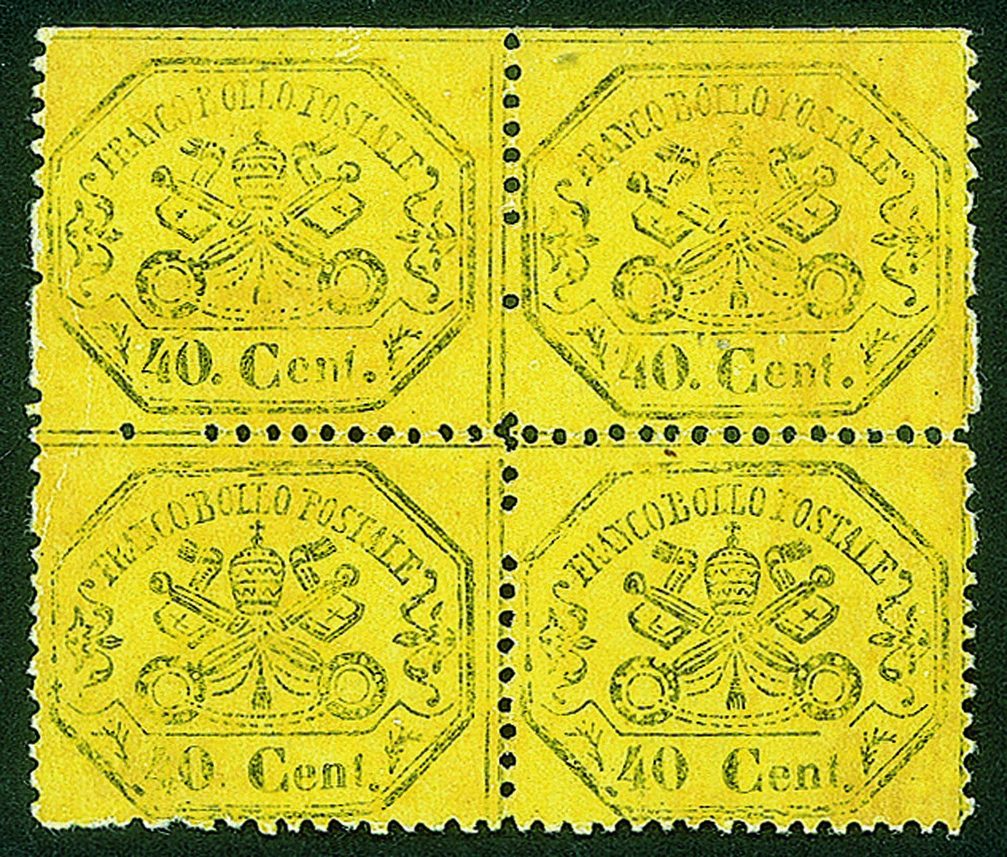 Antichi Stati Italiani - Stato pontificio - 1868 - 40 cent (29 + 29n)In quartina do bordo foglio (in alto) con salto di dentellatura in verticale - gomma integra - Diena + Colla