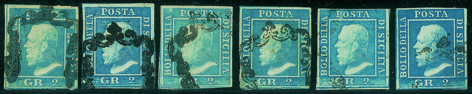 Antichi Stati Italiani - Sicilia - 1859 - Sei valori del 1 grano (8)III Tavola - tutti plattati - usati