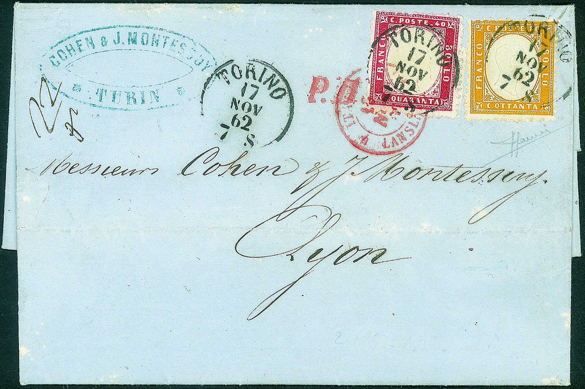 Da Torino a Lione del 17.11.62 - rara combinazione - cert. Sorani