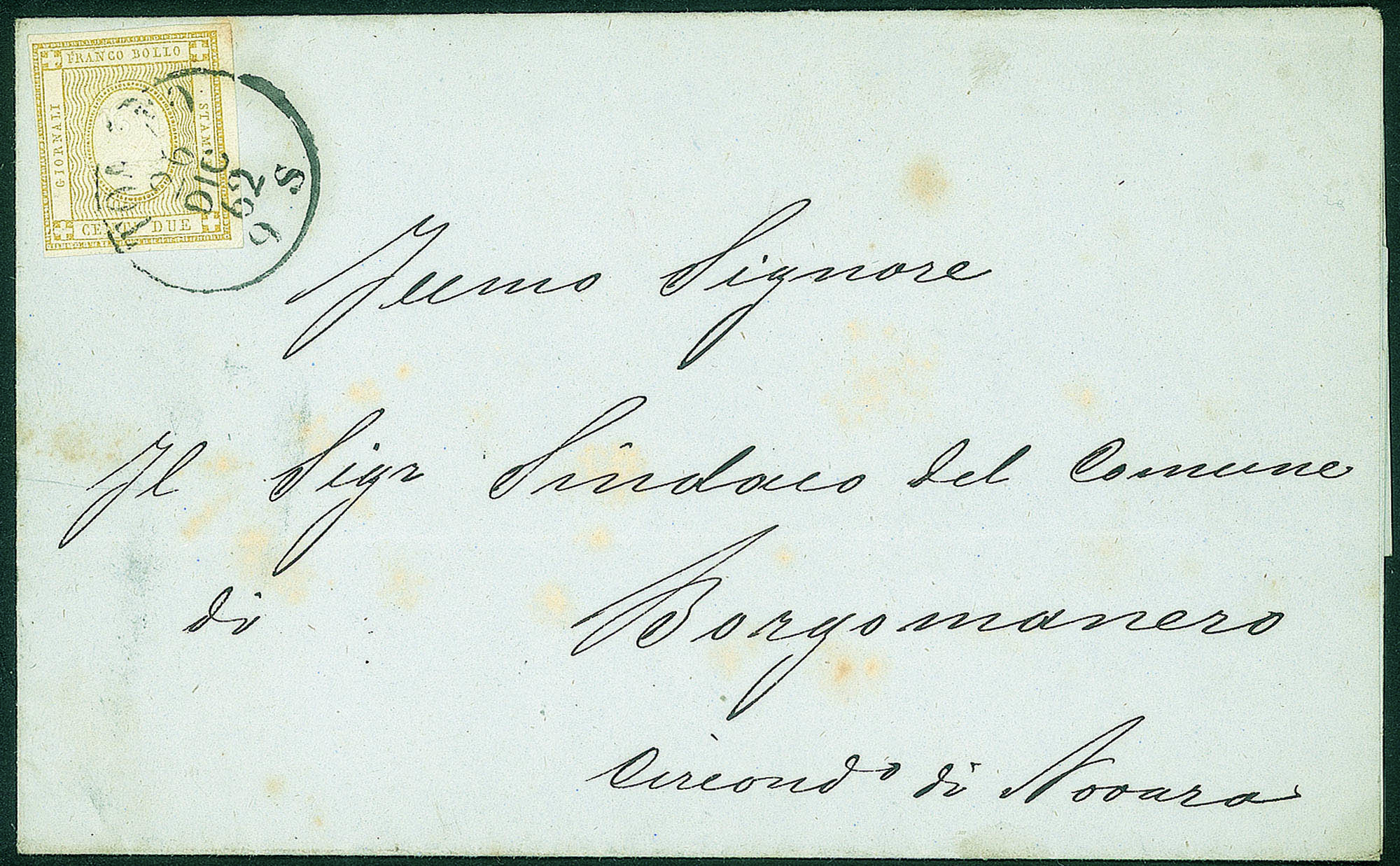 Regno - Vittorio Emanuele II - Lettera con 2 cent giallo (10c)Da Torino a Borgomanero del 26.12.62