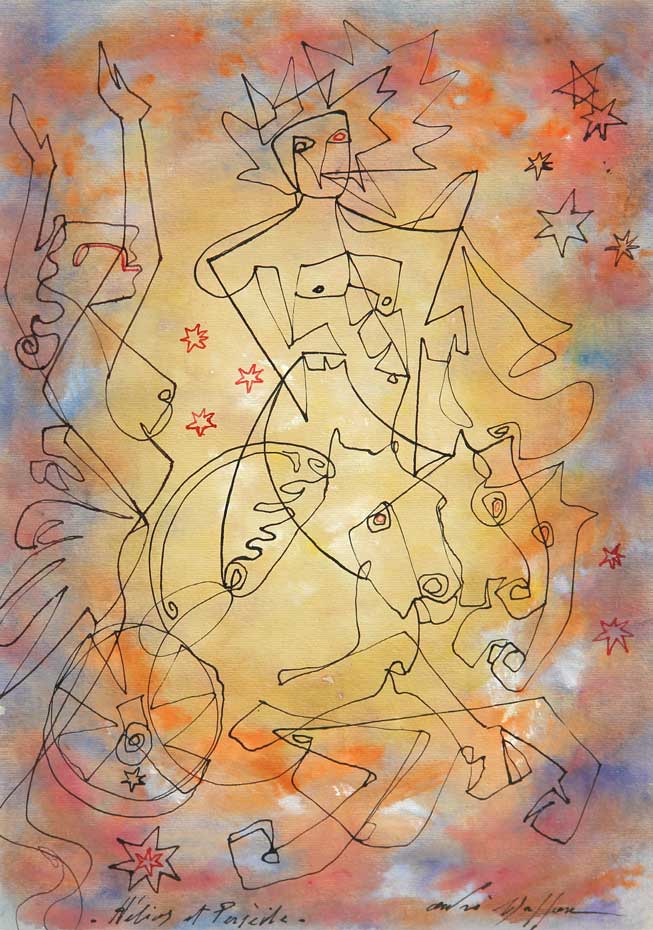 MASSON ANDRE' Helios et Perseide 1927 tecnica mista su cartoncino cm. 34 X 22.5 Titolo 'Helios et Perseide' (in basso a sinistra); firma 'Andrè Masson' (in basso a destra)