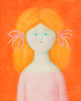 BUENO ANTONIO Bambina 1973 olio su faesite cm. 50 X 39 Firma 'A. Bueno' (in alto a destra) Dedica, firma 'All'amico Federico Iori, Antonio Bueno' (al retro) Email con conferma di autenticità a cura di Isabella Bueno, Associazione culturale Bueno