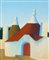 SALVO Alberobello olio su tela applicata su cartone cm. 25 X 20 Firma, titolo 'Salvo, Alberobello' (al retro) Autentica dell'artista su fotografia