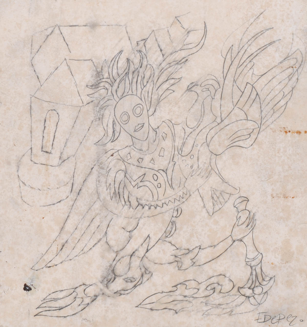 Fortunato Depero (Fondo 1892 - Rovereto 1960) Figura alata con uccello, 1929/1930;Matita e china su cartoncino, 25,8 x 24,5 cm