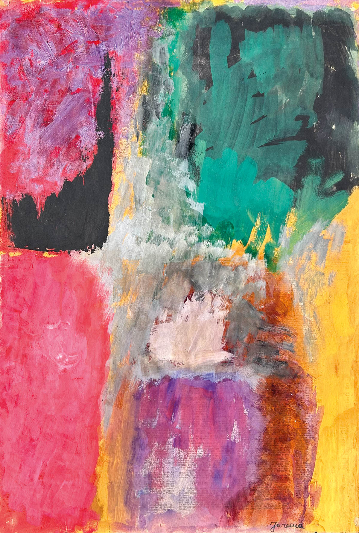 Jozef Jarema (Staryj Sambir 1900 - Monaco di Baviera 1974) Senza titolo, Anni ‘60;Tecnica mista su carta di giornale, 61,5 x 42,5 cm