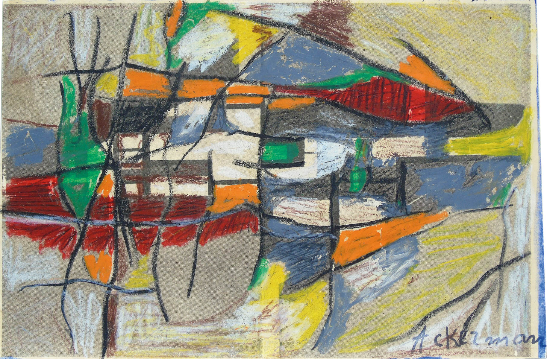 Paul Ackermann (1908 - 1981) Composizione;Tecnica mista sul retro pagina di...