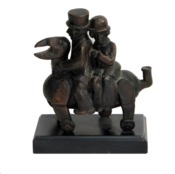 BORGHESE FRANZ Cavaliere e dama bronzo cm. 22 X 20 X 10 Edizione di 5 esemplari Firma, numerazione 'Borghese, RA 3/5' (su un lato)