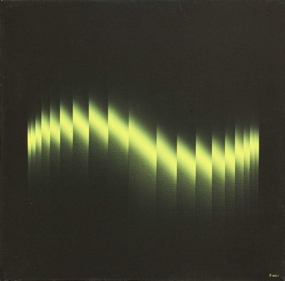 FINZI ENNIO Tensimodulatore ultralineare nero giallo 1972 acrilico su tela cm. 45 X 45 Titolo, data, firma 'Tensimodulatore ultralineare nero giallo, 1972, Finzi' (al retro) Autentica dell'artista su fotografia. Certificato di autenticità della galleria Orler