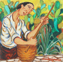 MIGNECO GIUSEPPE Contadino 1960 olio su tela cm. 25 X 25 Firma 'Migneco' (in basso a destra) Dichiarazione di autenticità, firma 'Questo dipinto è opera mia, Migneco'; timbro del Catalogo Generale Giuseppe Migneco con n° 3987 (al retro)