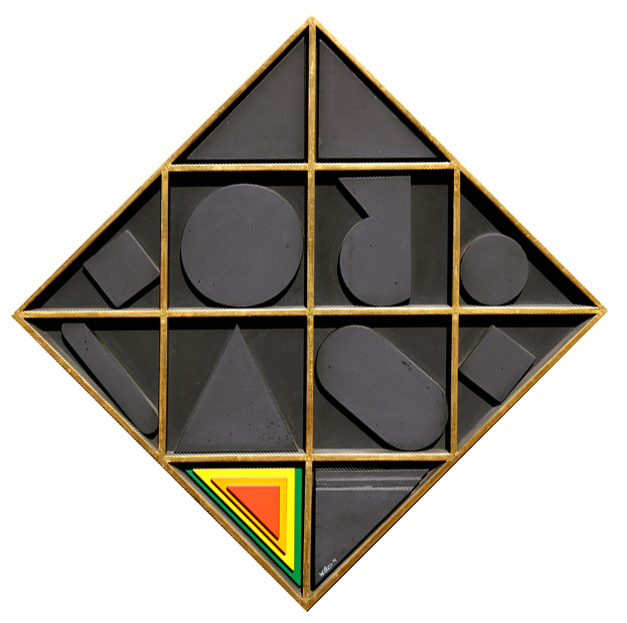 DEL PEZZO LUCIO Casellario 1971 tecnica mista su tavola cm. 80 X 80 Firma, data 'Del Pezzo, 71' (in basso a destra)