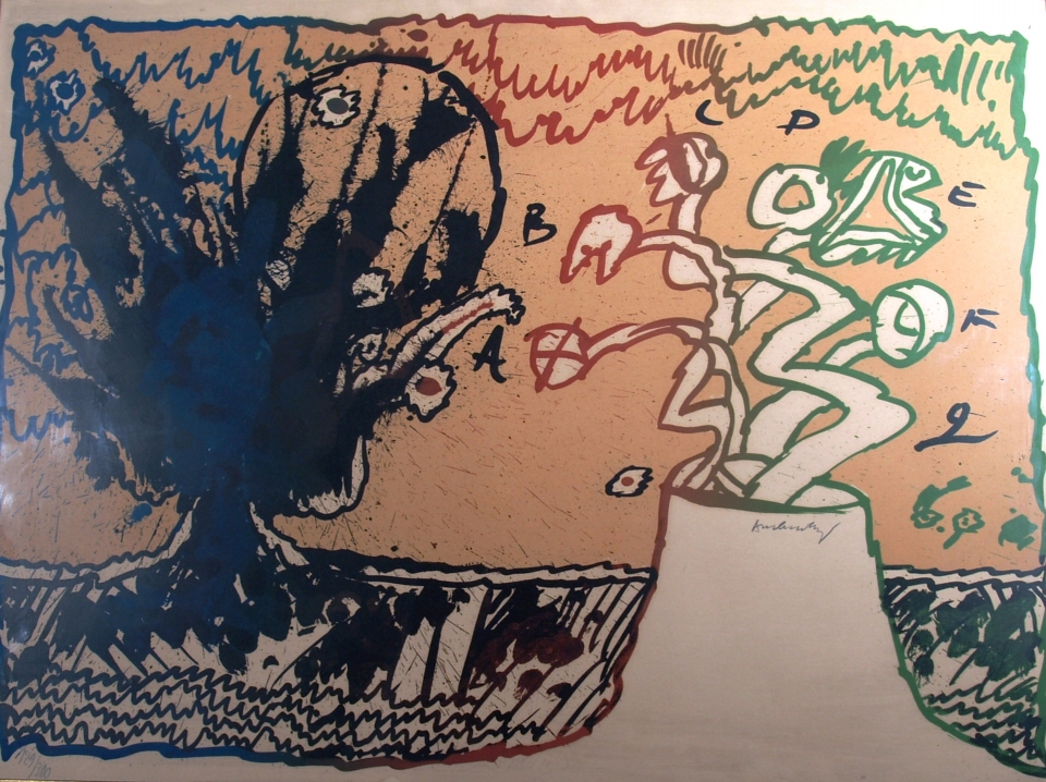 Lotto 5 | ALECHINSKY PIERRE (Belgio 1927) "Senza titolo" Litografia colorata su carta...