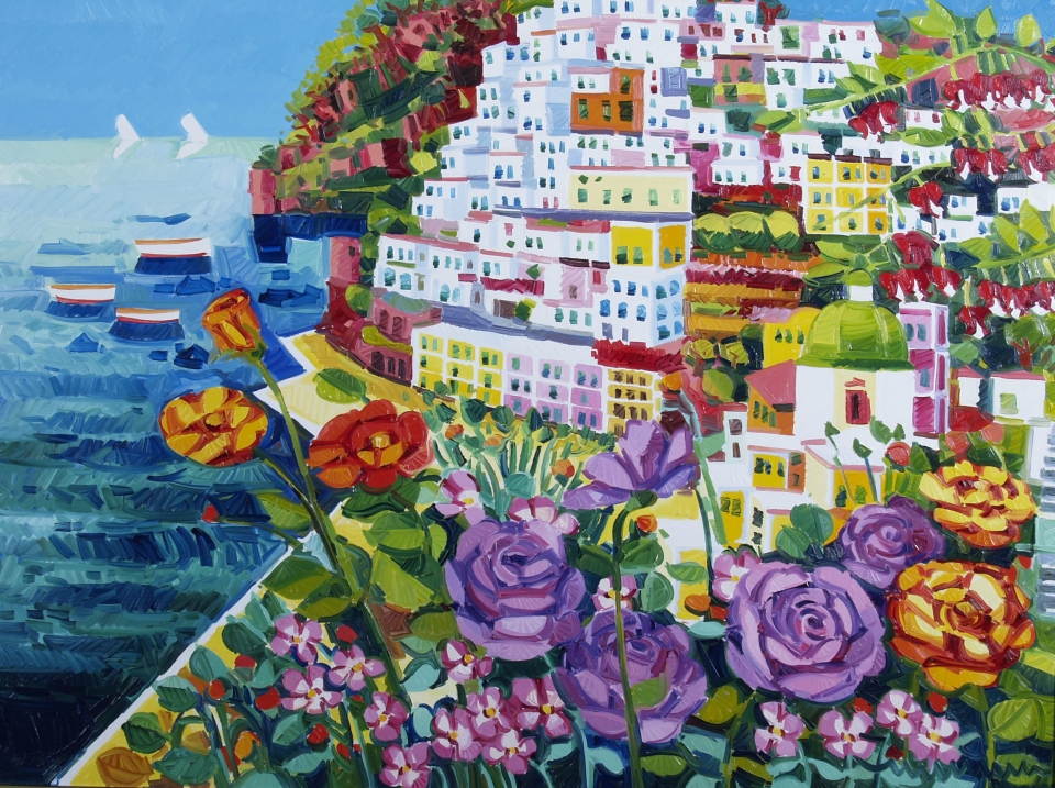 FACCINCANI ATHOS (Peschiera D/G 1951) "Positano e gioco di fiori" Olio su...