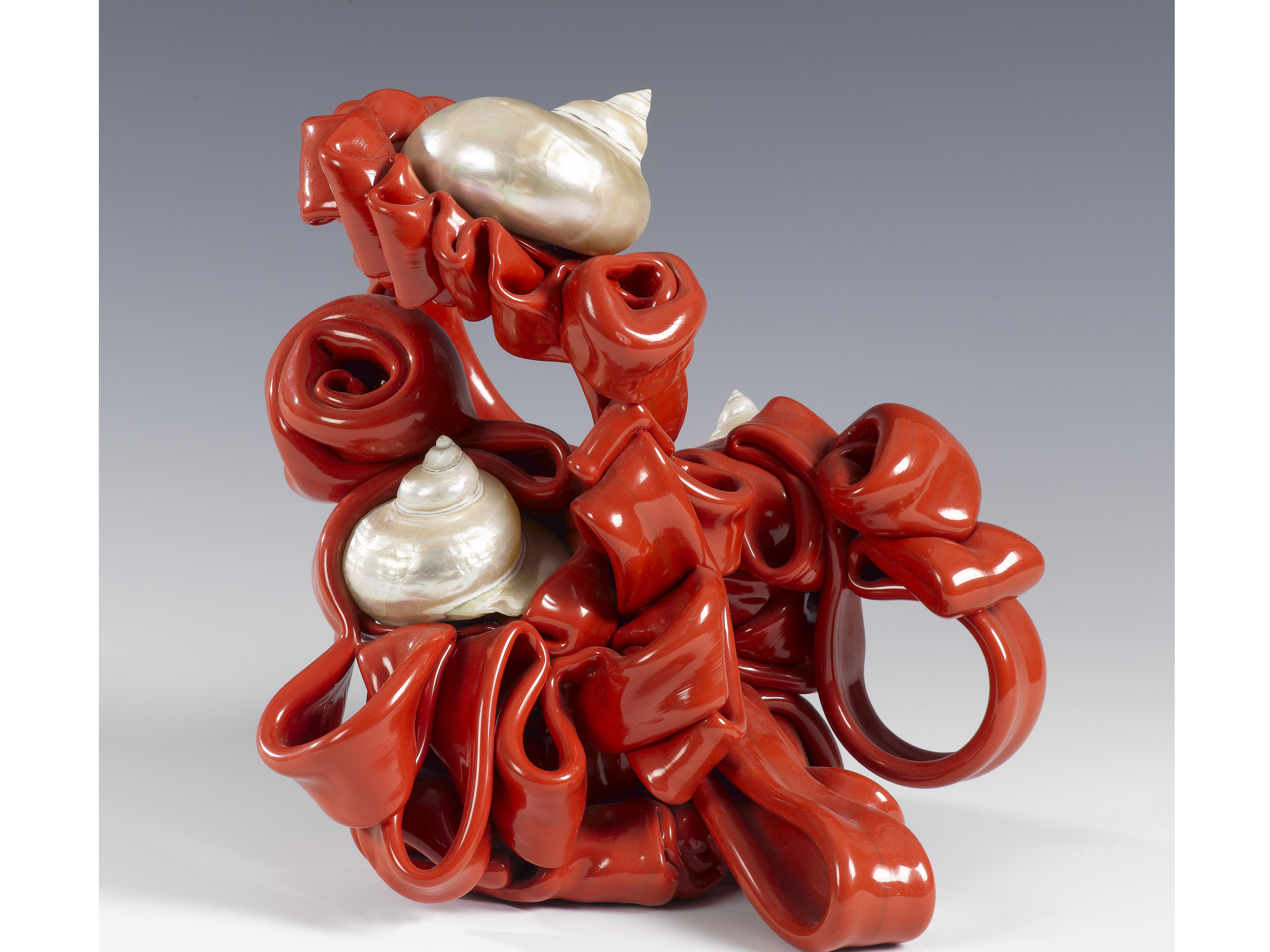 Stefania Scarnati Sacchi (Milano 1948) Tecnopolimero e conchiglie Tecnopolimero Bayer Novodur e conchiglie Firmato e datato 1999 Misure 21x21 cm, altezza 22 cm
