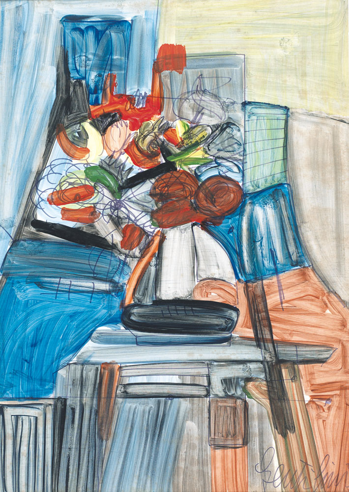 ALDO GENTILINI Genova 07/02/1911 - Tortona 10/08/1982 Composizione tecnica mista su cartoncino cm. 70x50, firma in basso a destra.