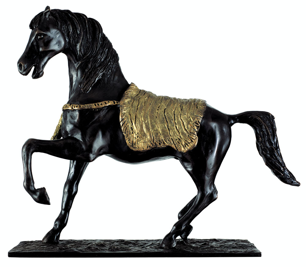GIOVANFRANCESCO GONZAGA Milano 12/06/1921 - Milano 02/10/2007 Lo stallone con gualdrappa, 2006 scultura in bronzo a cera persa cm. 16x43, altezza 39, esemplare 50/100, firma alla base, certificato d'autenticità con timbro e firma della Fonderia Fusioni d'Arte V3 e Telemarket su foto, certificato della Telemarket (BS) allegato.