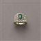 Anello in oro bianco e giallo rodiato bianco con pavé di diamanti rotondi taglio vecchio europeo ed al centro smeraldo ottagonale taglio a gradini, g.10,80, misura: 13/53 Diamond -set bi-coloured gold ring centered by an emerald