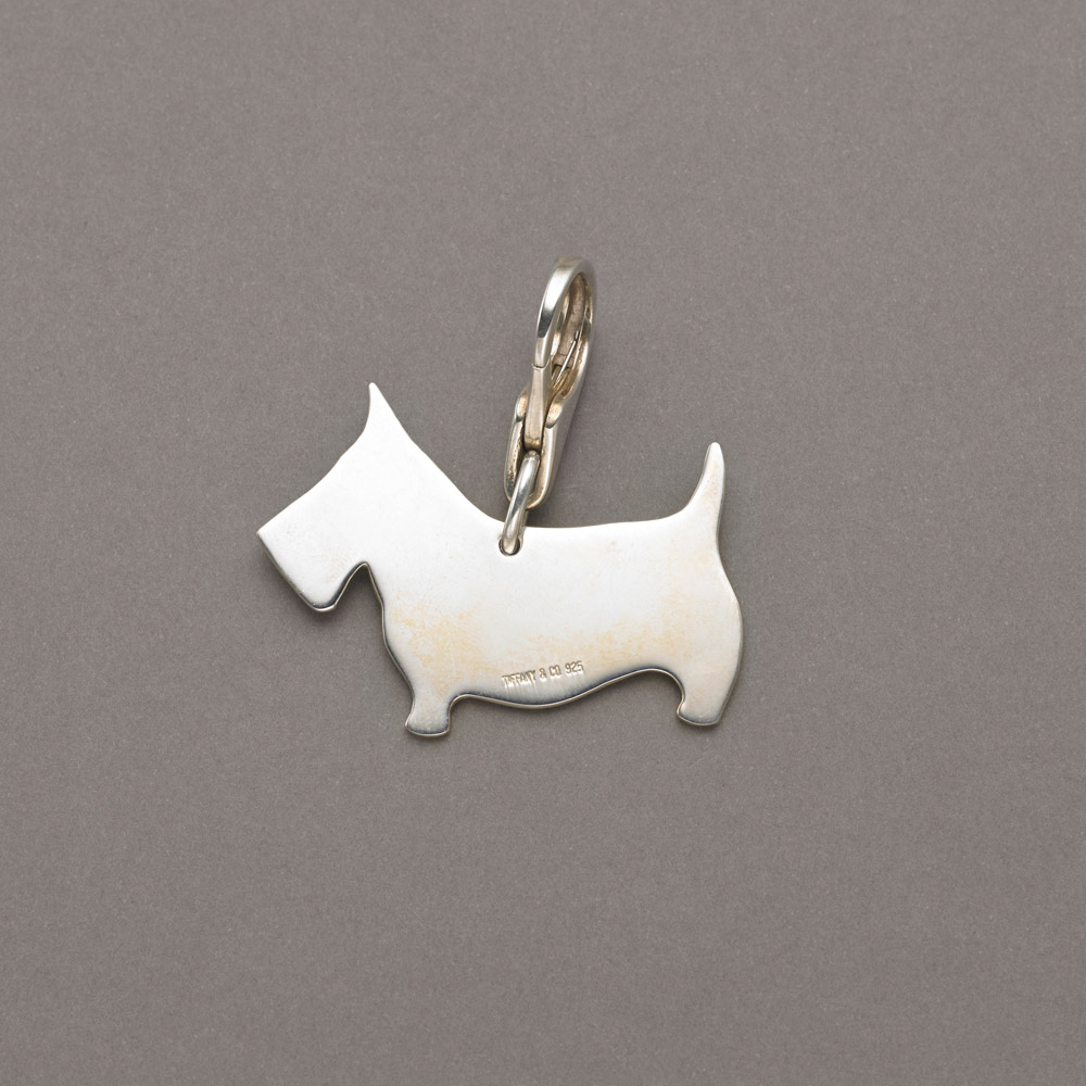 Portachiavi in argento 925/1000 a sagoma di Scottish Terrier, g.13, TIFFANY&CO., sacchetto e astuccio originali Stirling silver Scottish Terrier key-ring. Tiffany & Co. Original pouch