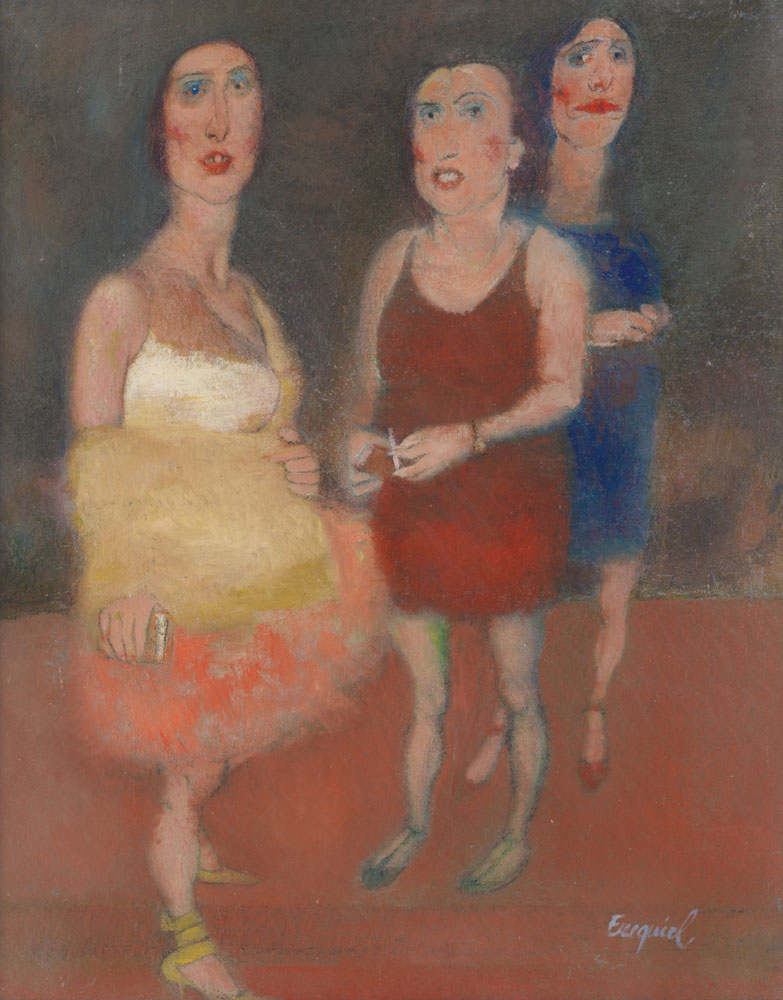 LOPEZ GARCIA EZEQUIEL Cadice 18/06/1940 Le tre dame olio su tela cm. 50x40,...
