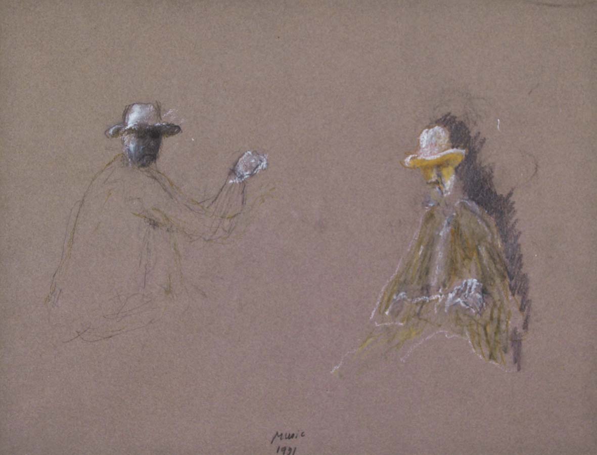 MUSIC ZORAN Gorizia 1909- Venezia 2005 Due uomini con il cappello 1991 disegno a pastello grasso su carta 50x65 cm firma e data in basso al centro Bibliografia Zoran Music ed. Electa pag. 150 tav. 151