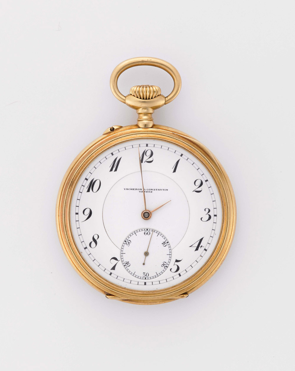 VACHERON&CONSTANTIN Orologio da tasca da uomo in oro 18K Primi anni 1910/20 ca. Quadrante, movimento e cassa firmati, quadrante in smalto bianco con cifre arabe, cassa n.219077, diam. 50mm VACHERON&CONSTANTIN 18K gold pocket watch, the white enamel dial with Arabic hours Beginning of the 1910/20s circa (diam. 50 mm)
