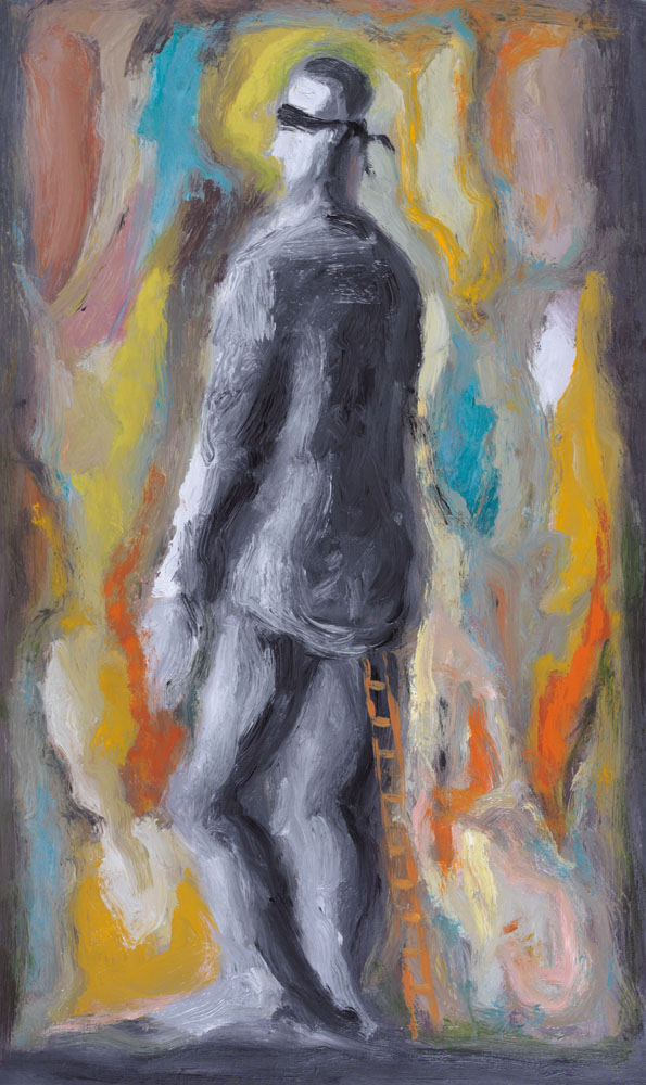 ROBERTO BARNI Pistoia 30/09/1939 Solitudine isterica, 1989 olio su tela cm. 75x45, firma, titolo e anno al retro, dichiarazione d'autenticità dell'artista su foto.
