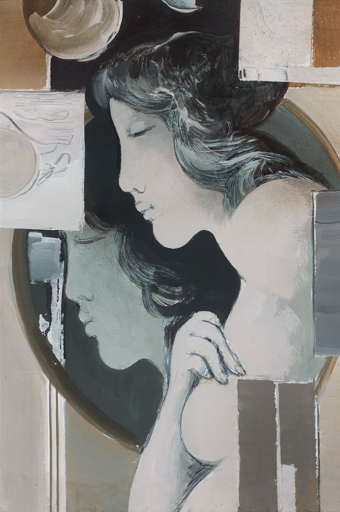 polimaterico su cartoncino applicato su tavola cm. 60x40, firma poco leggibile in basso a destra, dichiarazione d'autenticità della Arte Mercato (MI) su foto.