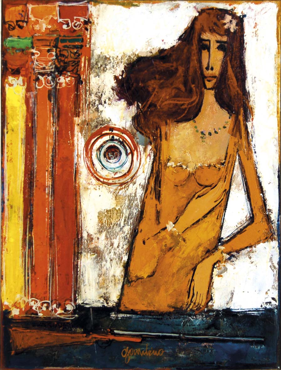 GAMBINO GIUSEPPE Vizzini 1928 - Preganziol (TV) 1997 Tiro a segno (anni '60) olio su tela 60x45 cm firma in basso al centro firma e titolo al retro esposizioni Galleria d'Arte Contemporanea Al Sole Feltre 1969 - etichetta e timbro al retro