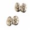 ciascuno di forma ovale in oro satinato cesellato a corolle, al centro rose di diamante, entro astuccio d'epoca, g 8