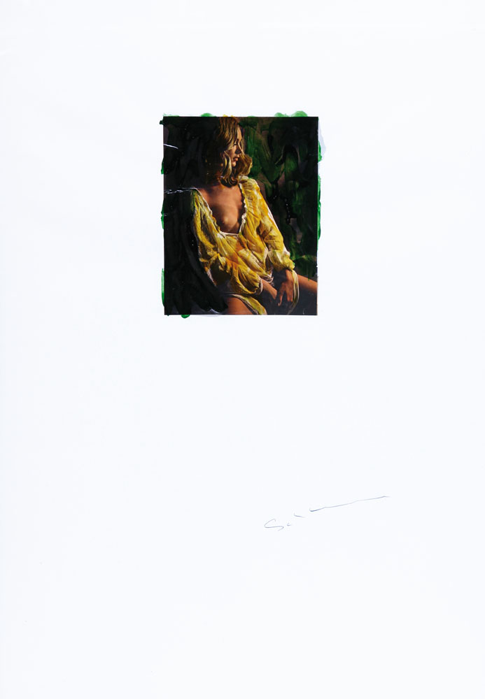 MARIO SCHIFANO Homs (Libia) 1934 - Roma 26/01/1998 Senza titolo, 1979-80 tecnica mista e collage su carta cm. 100x70, firma in basso al centro, opera registrata presso l'Archivio Generale dell'Opera di Mario Schifano a cura della Fondazione Mario Schifano (Roma) al numero 79-80/857 come da dichiarazione su foto e su certificato allegati.