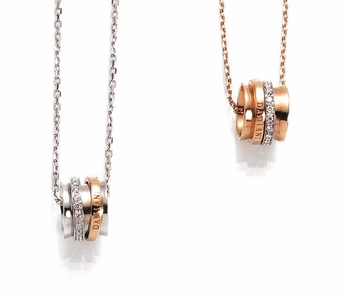 DUE CATENE, DAMIANI, IN ORO BIANCO, ORO ROSA E DIAMANTI