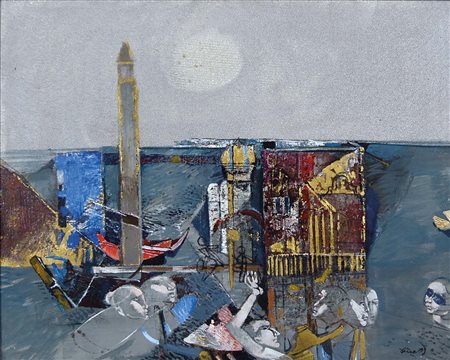 DINETTO LINO Este (PD) 1927 Venezia olio su tela 80x100 cm firma in basso a destra esposizioni Galleria d'Arte Ghirlandina Modena - timbri al retro
